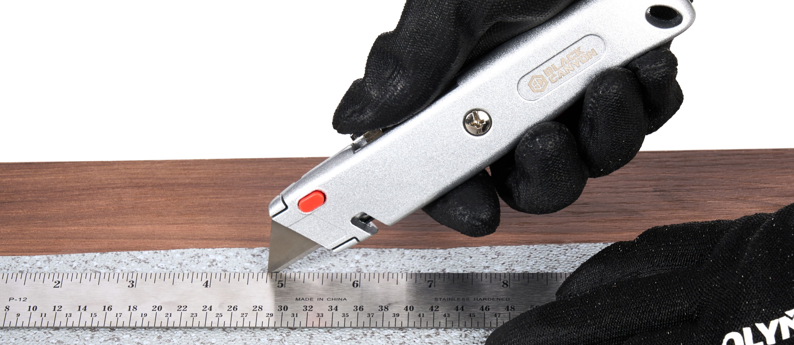 Idea for cutting through heavy materials like carboard and plastic, where there's minimal pressure on the blade.