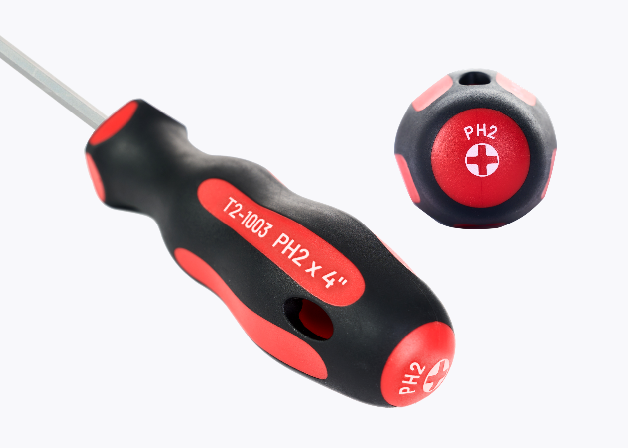 Each screwdriver features high-visibility size markings on both the handle and the butt end, making it easy to identify the right tool at a glance.