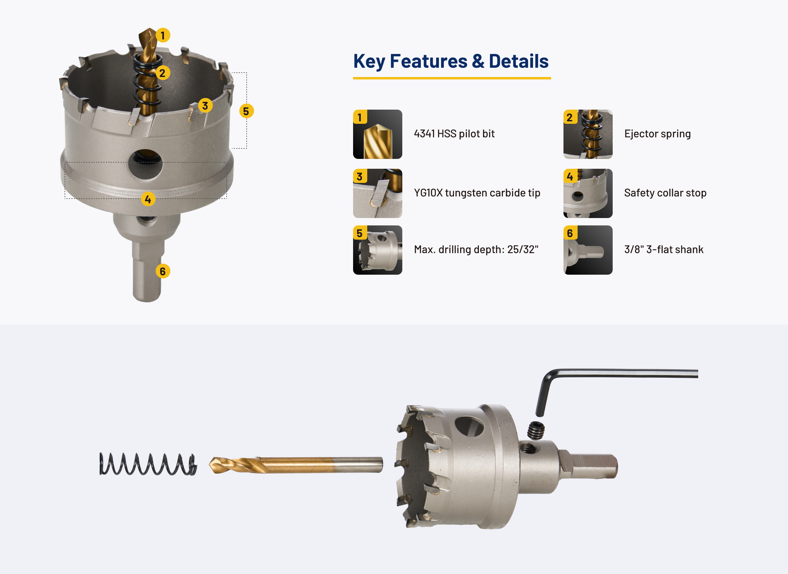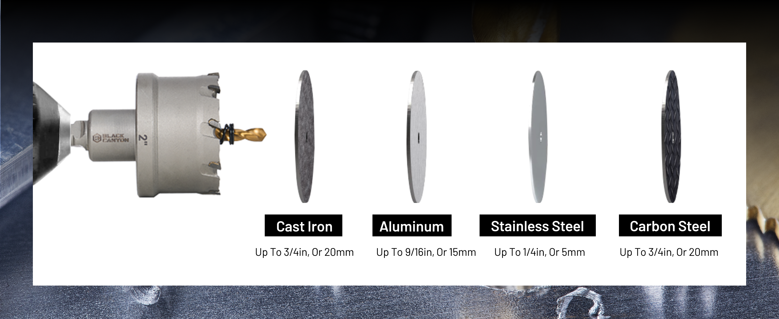 This long-lasting, carbide-tipped hole saw can cut more than 400 holes in 16ga 304 stainless steel sheet.