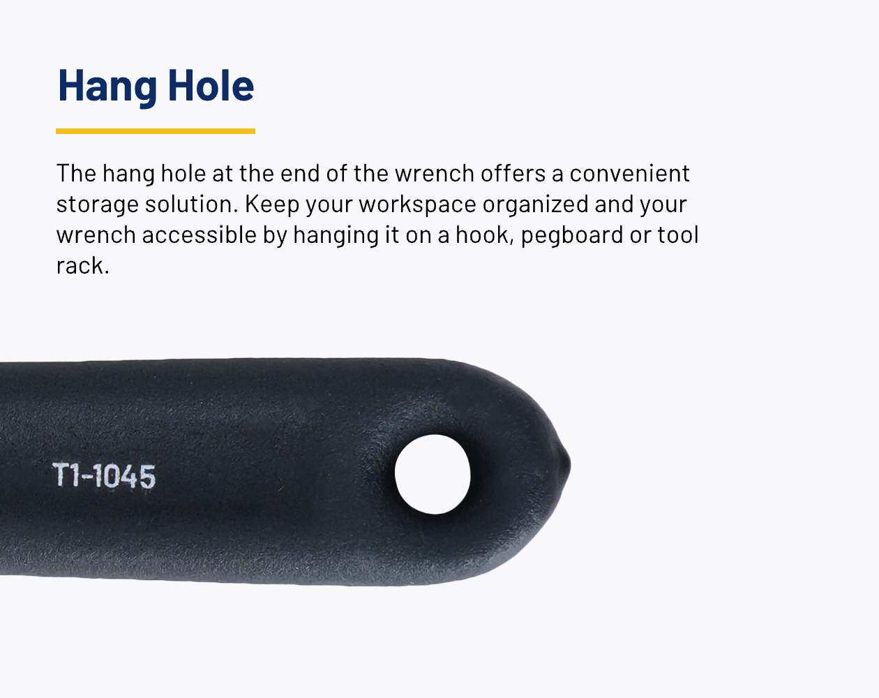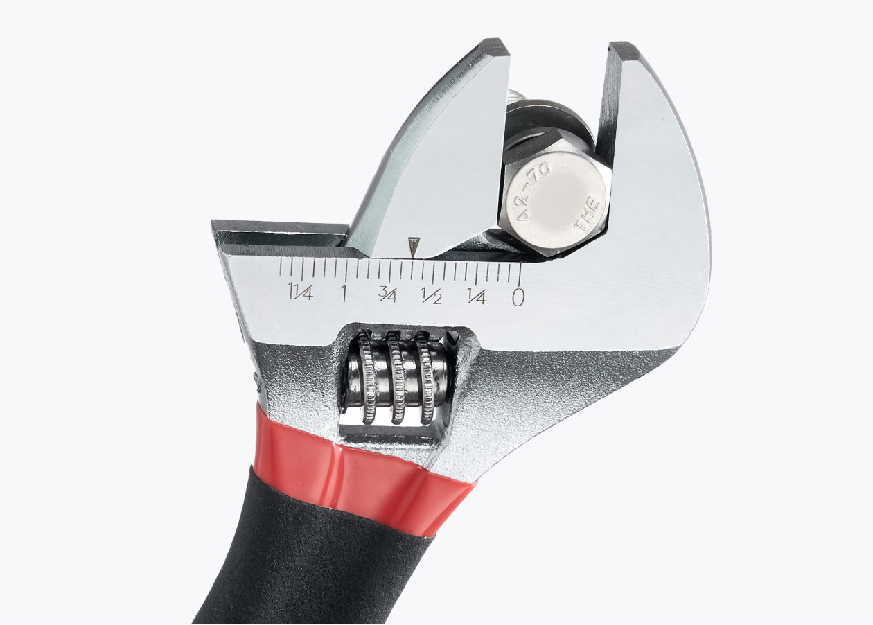 Precisely machined for a snug fit, this adjustable wrench is ideal for bolts and nuts with hexagonal heads. It minimizes slippage by gripping fasteners securely, ensuring optimal torque and control during use.