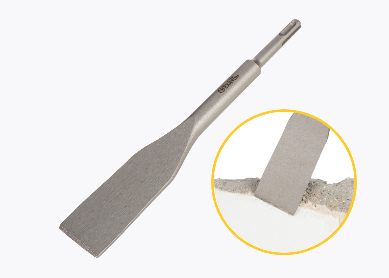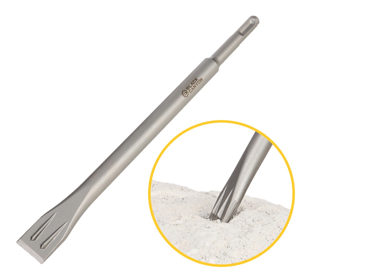 Power ribs on the flat chisel's blade enhance impact energy and expedite material removal. It's good for chiseling and breaking work in brick, concrete and stone.
