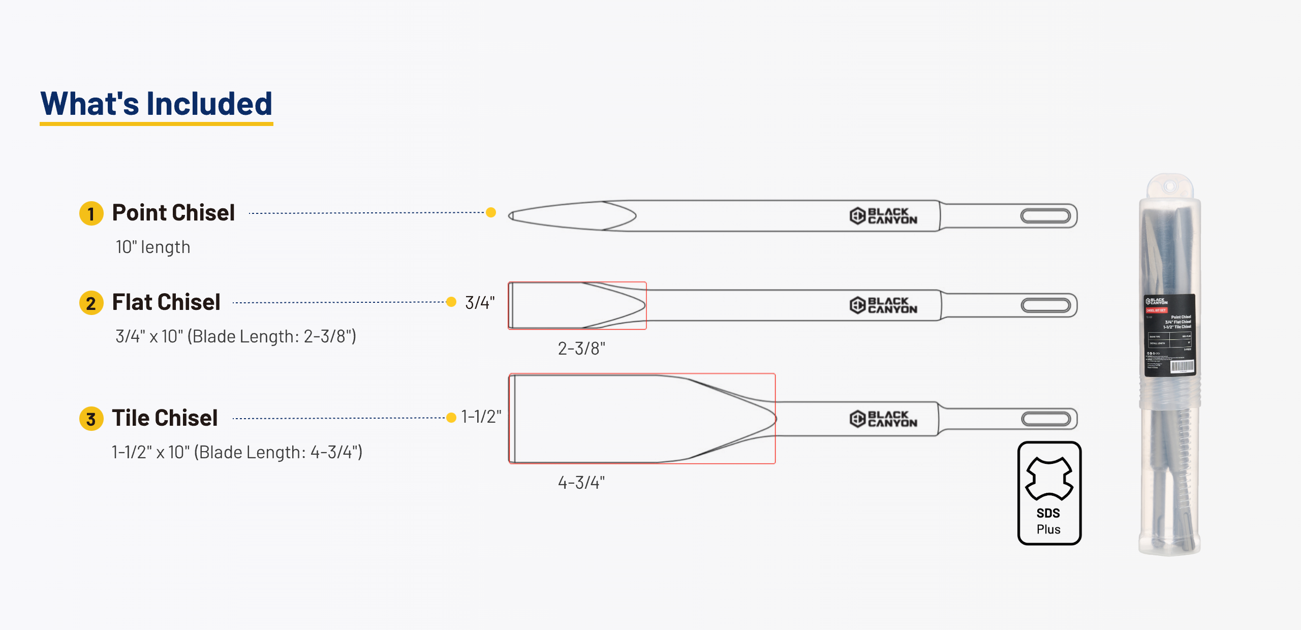 These bits provide up to 10x longer lifespan than standard chisel bits. Optimized braze and a specialized hardening process make the robust head ideal for high-impact applications. Bits are constructed from heat-treated, high-grade 40CR alloy steel to resist wear, work longer and stay sharper when breaking cinder block, concrete, brick or tile.