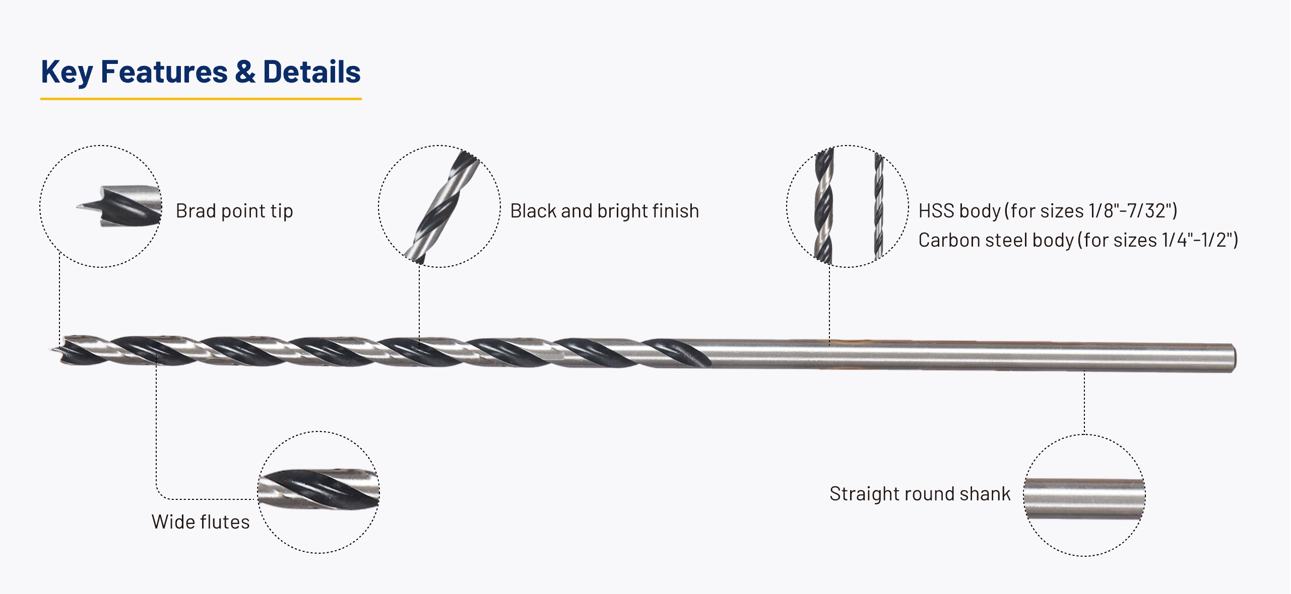 The HSS and carbon steel bodies are heat-treated to improve bit strength, reducing the risk of fracture under load. The black oxide finish in the flutes provides protection against rust and corrosion, ensuring reliable and lasting performance even in tough working conditions.