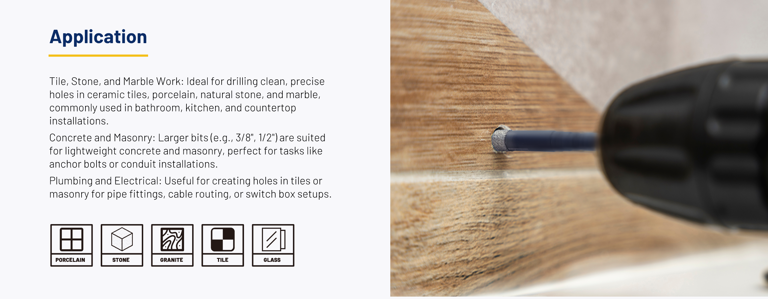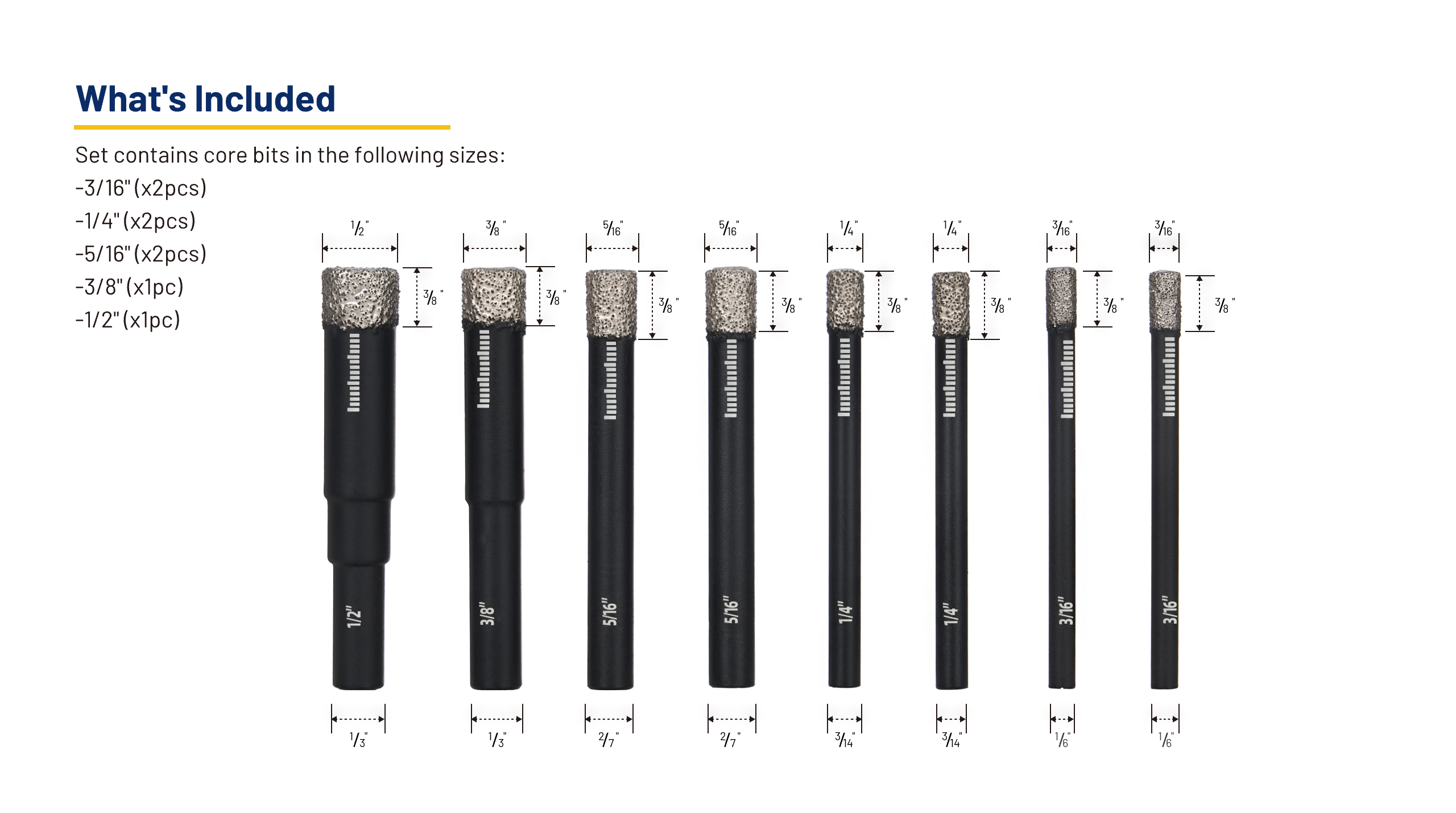 Each bit includes an internal wax lubricant that activates under heat, helping to cool the bit during use. This enhances cutting performance, prolongs the life of the tool, minimizes overheating risks and allows for dry drilling—no coolant needed.