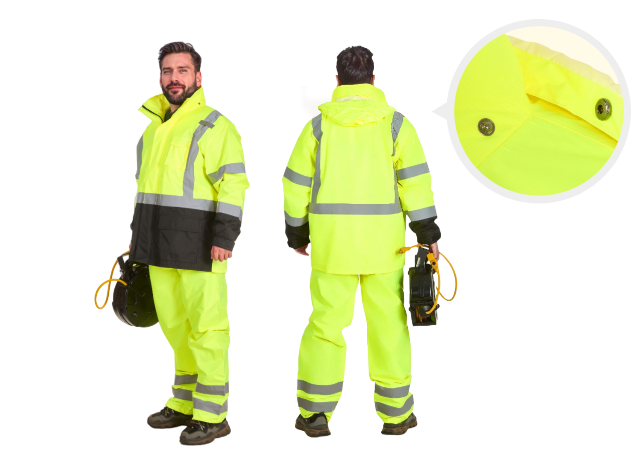 -Perfect for outdoor workers in industrial or recreational settings needing enhanced visibility and protection from rain.