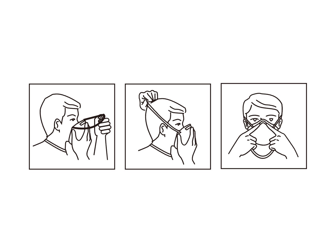1. Put the mask over your mouth and nose with the metal nose clip facing up.