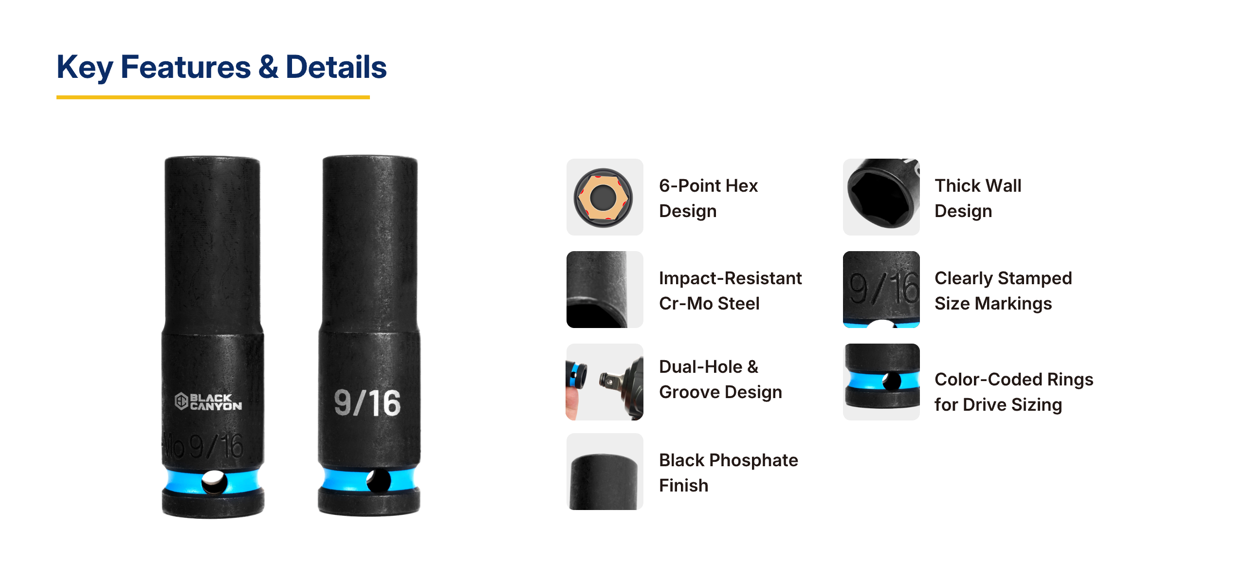 Socket Type Deep & Standard Impact Deep Impact Deep Impact (Metric Only) Deep & Standard Impact Deep & Standard Impact Deep Impact (SAE Only)