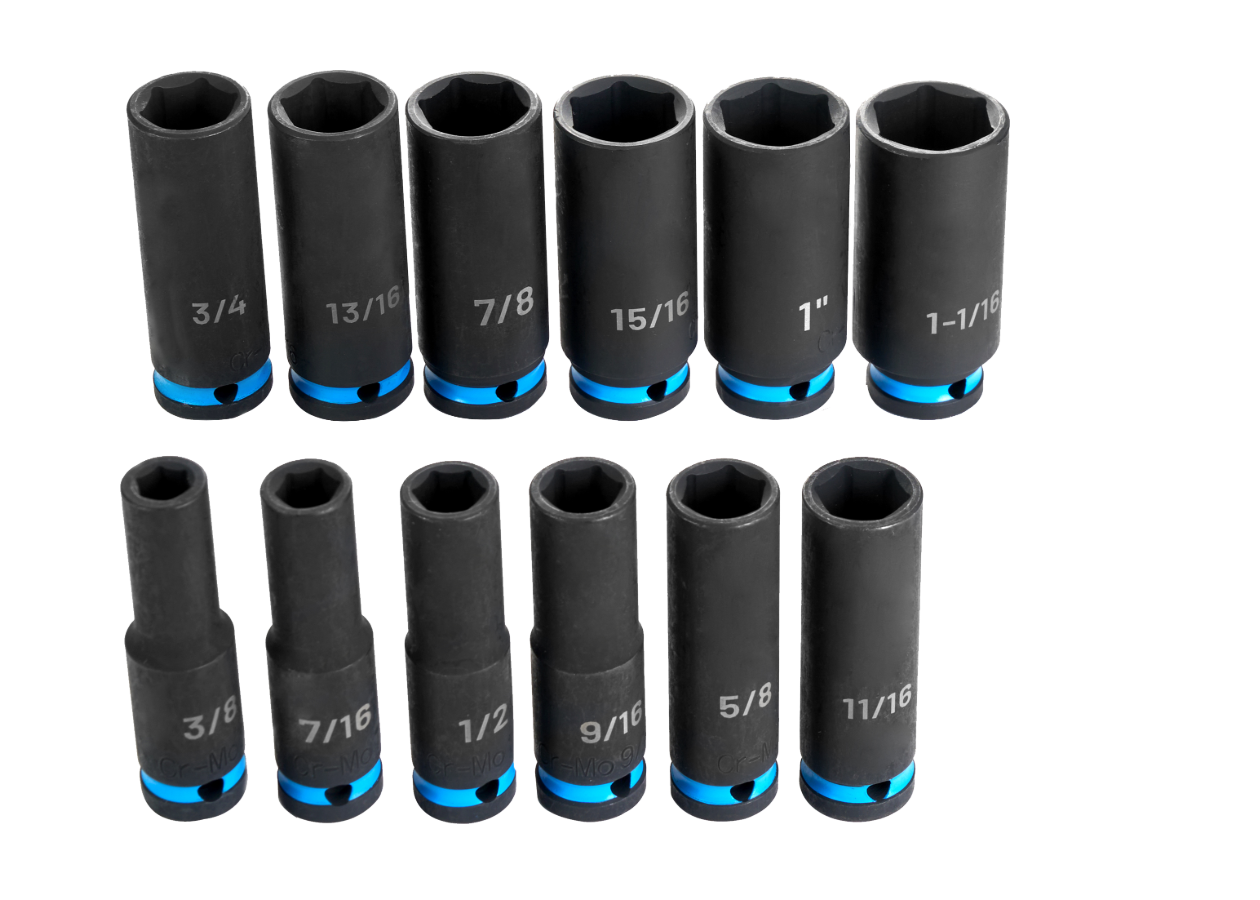 1/2 in Drive Impact Socket Set, 6-Point, SAE, 12 Piece