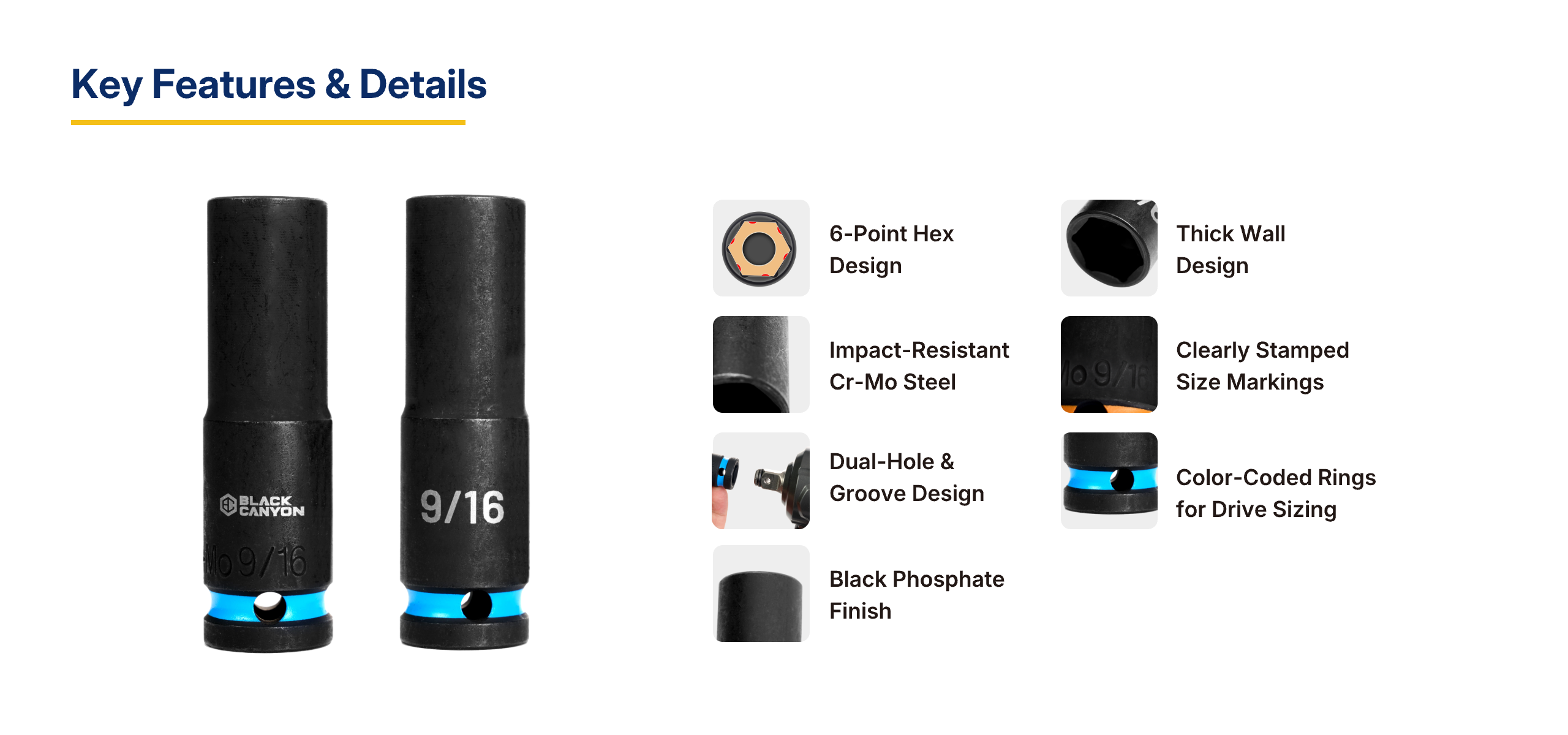 Socket Type Deep & Standard Impact Deep Impact Deep Impact (Metric Only) Deep & Standard Impact Deep & Standard Impact Deep Impact (SAE Only)