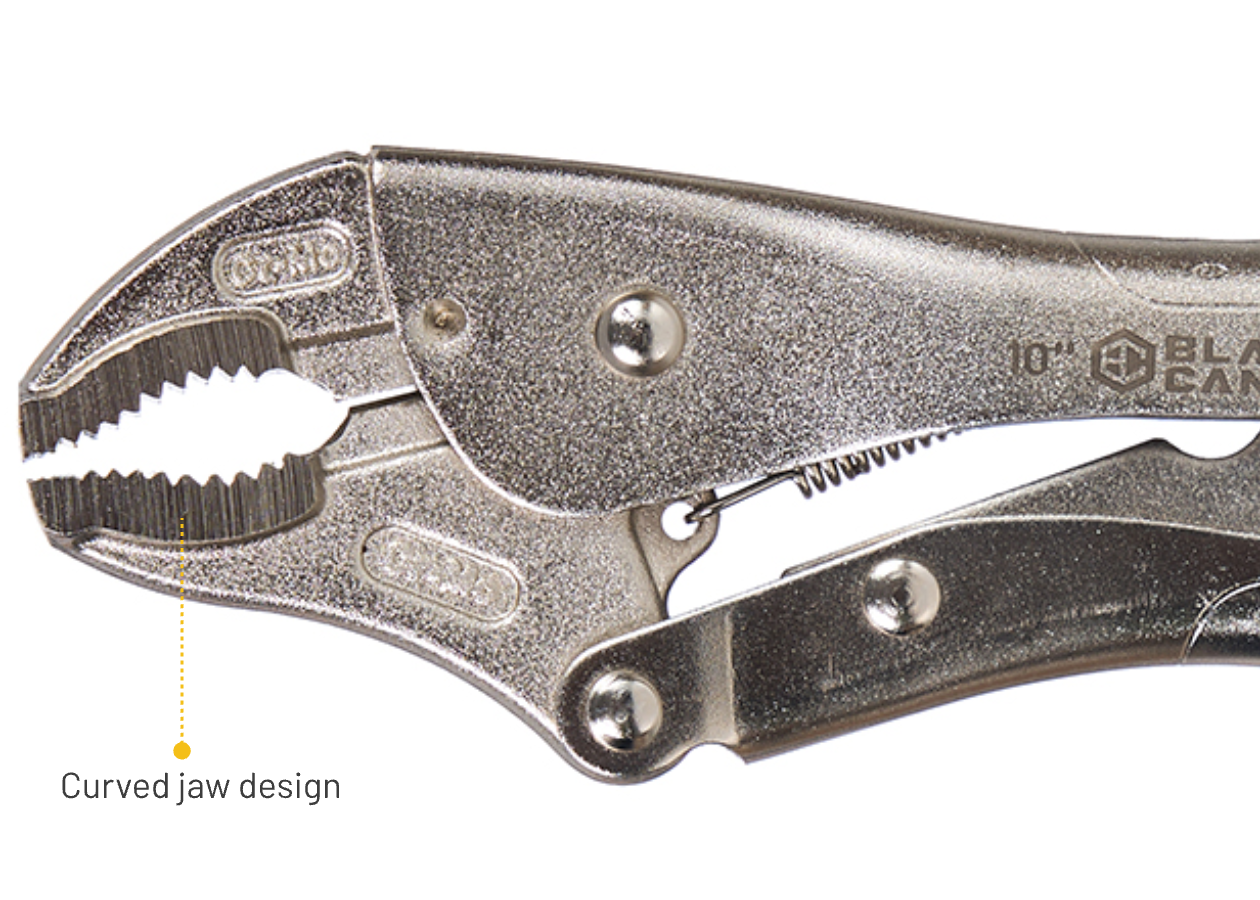 The jaw design increases the contact area, improving stability and grip strength, while the teeth are hard enough to work on fasteners.