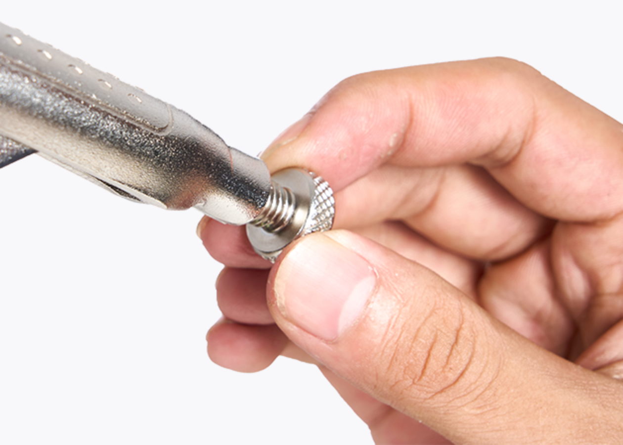 Knurled knob supports a strong grip for making adjustments without slipping.