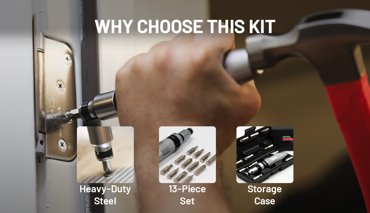 The shank and bits are made from S2 steel, known for its strength and resistance to wear and corrosion.