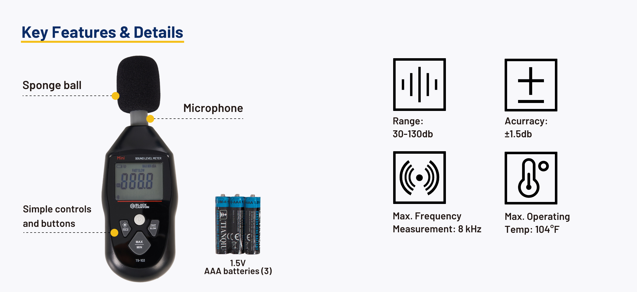 Extensive range makes this meter versatile in many environments, from quiet indoor settings to noisy industrial areas.
