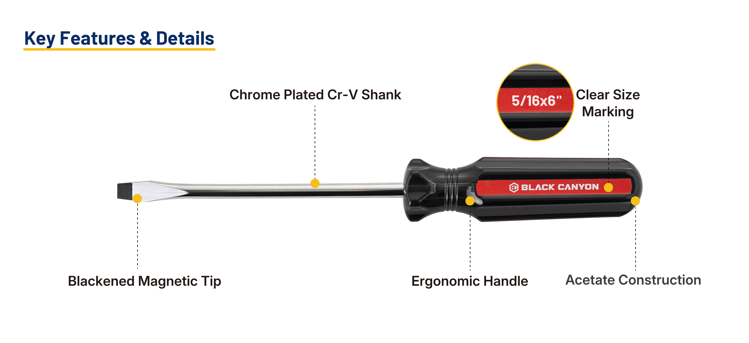 Magnetic Slotted Screwdriver 1/8 – Standard Grip Acetate Handle, 3 in Shank, 6-3/4 in Overall