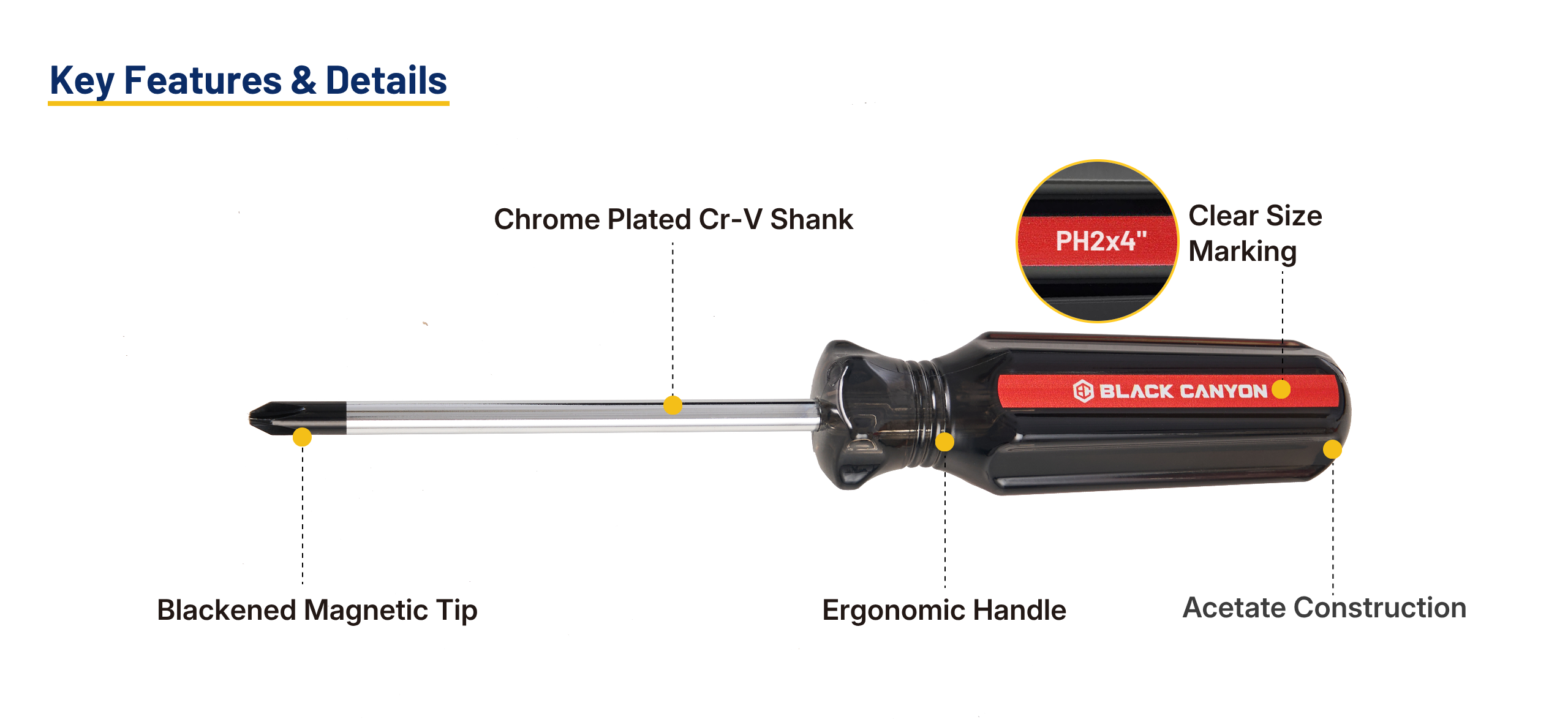 Cr-V shank provides excellent strength and long-lasting durability.