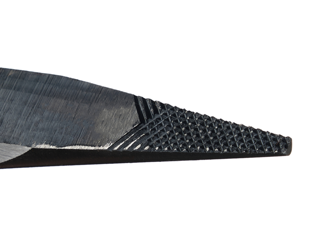 Serrations are cut in two passes to create regular spacing. Crosscut teeth ensure an even distribution of force and provide a strong grip from any angle.
