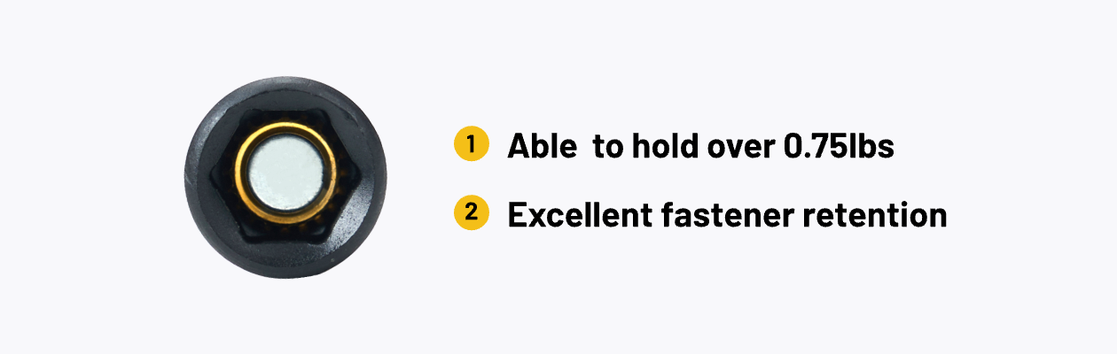Premium, industrial-grade magnets feature exceptional magnetic force, able to hold over 0.75 lbs and ensuring excellent fastener retention.