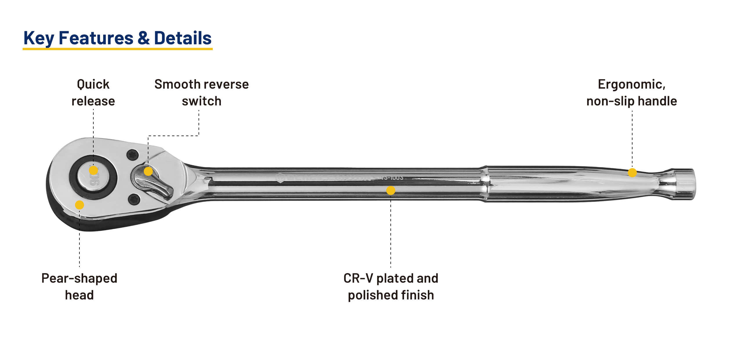 Ratchet wrench stays in optimal condition, with corrosion resistance and a professional appearance