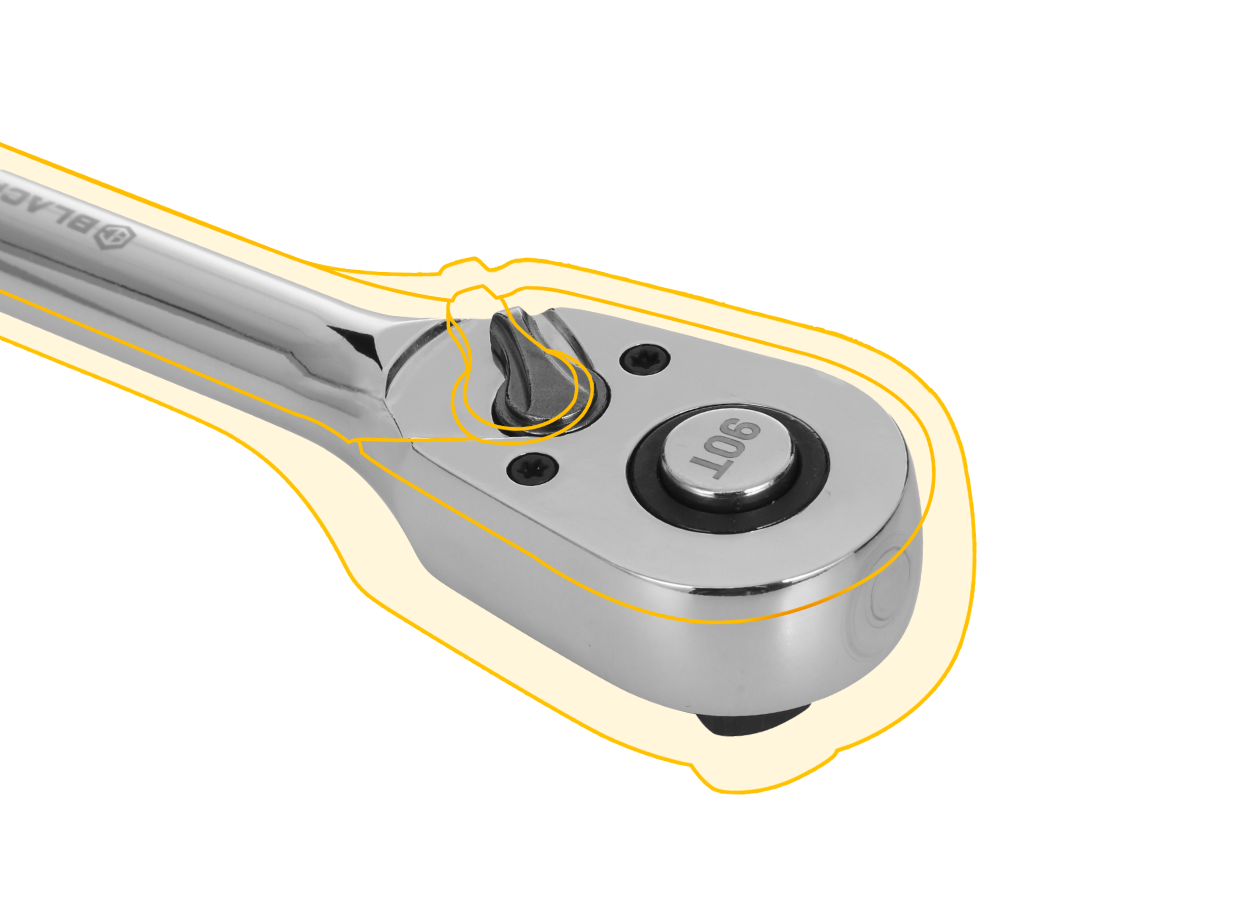 Equipped with a 90-tooth mechanism, this ratchet wrench ensures smooth operation with minimal movement within a 4° swing. The higher tooth count speeds up tasks and enables efficient use on fasteners in confined spaces.