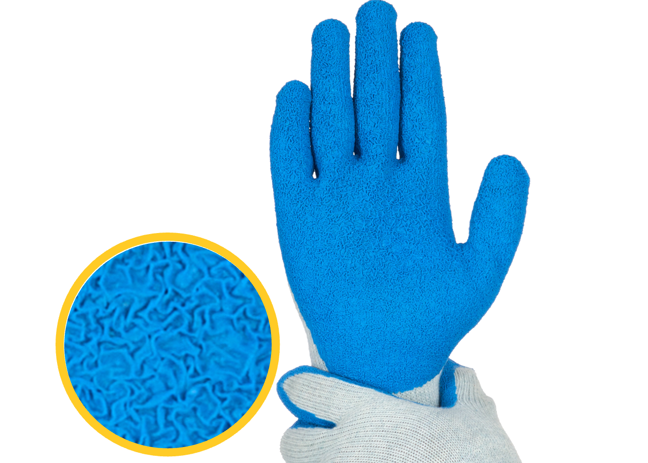 The palm-dipped latex coating is abrasion-resistant and provides a firm grip to prevent slipping, making it ideal for medium to heavy-duty use.