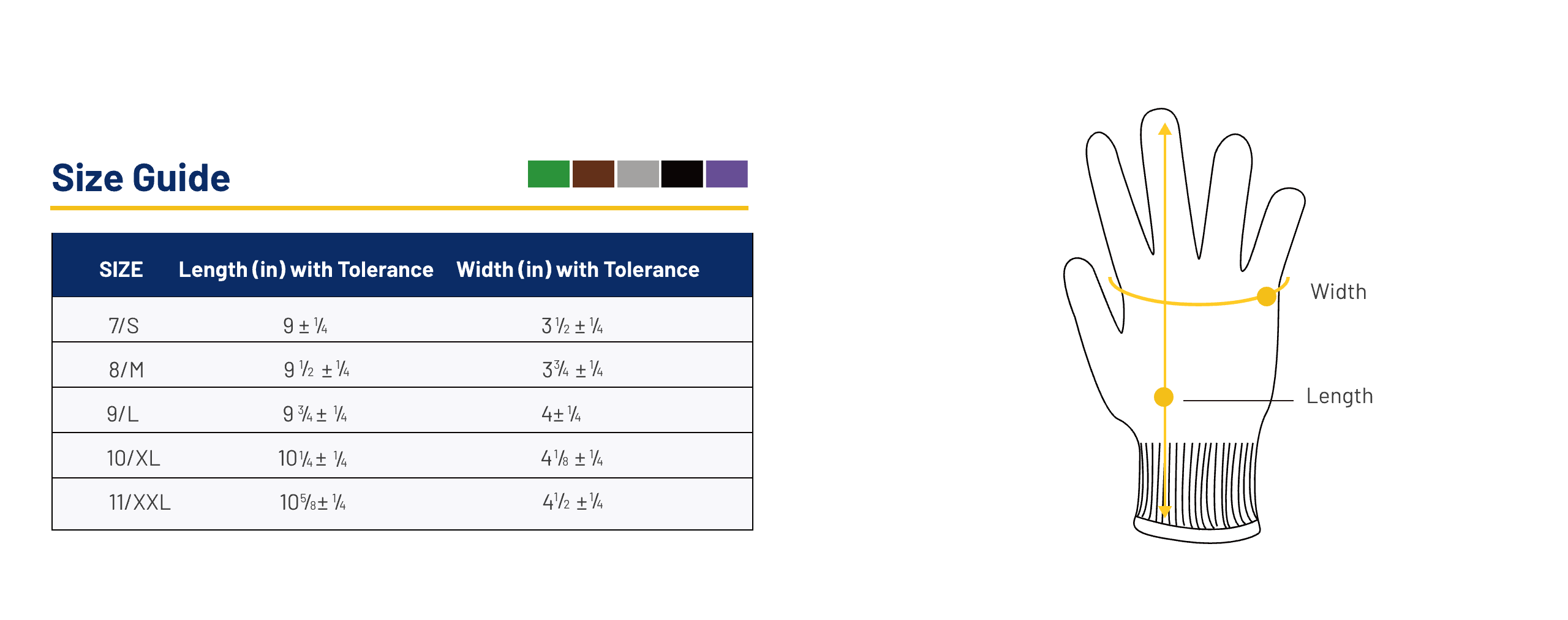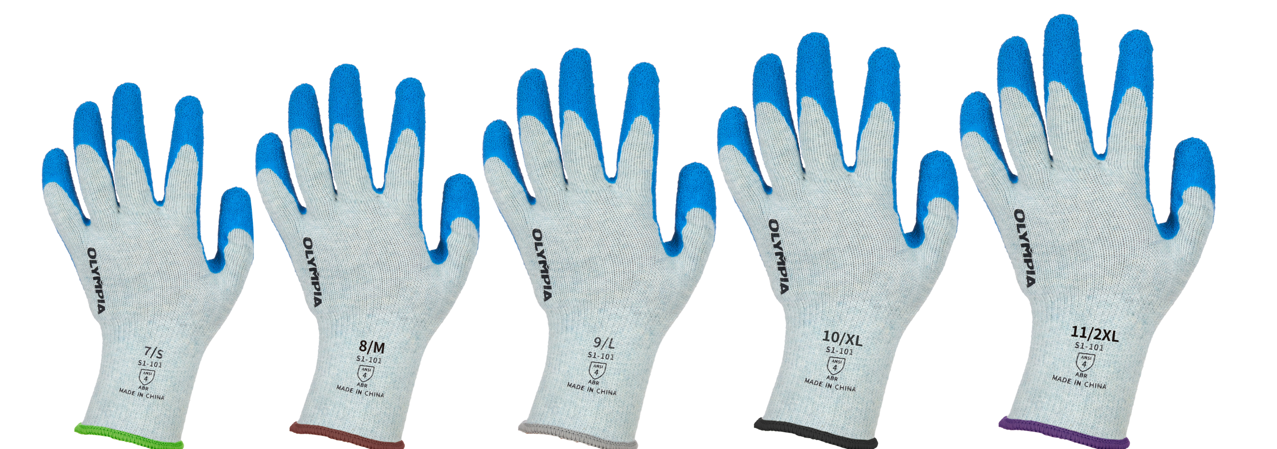 Wear resistant, printed size on the back remains clear and legible, even after heavy use. Serged edge color-coding is applied across all Olympia gloves, providing a clear and consistent visual for quick and easy size identification.