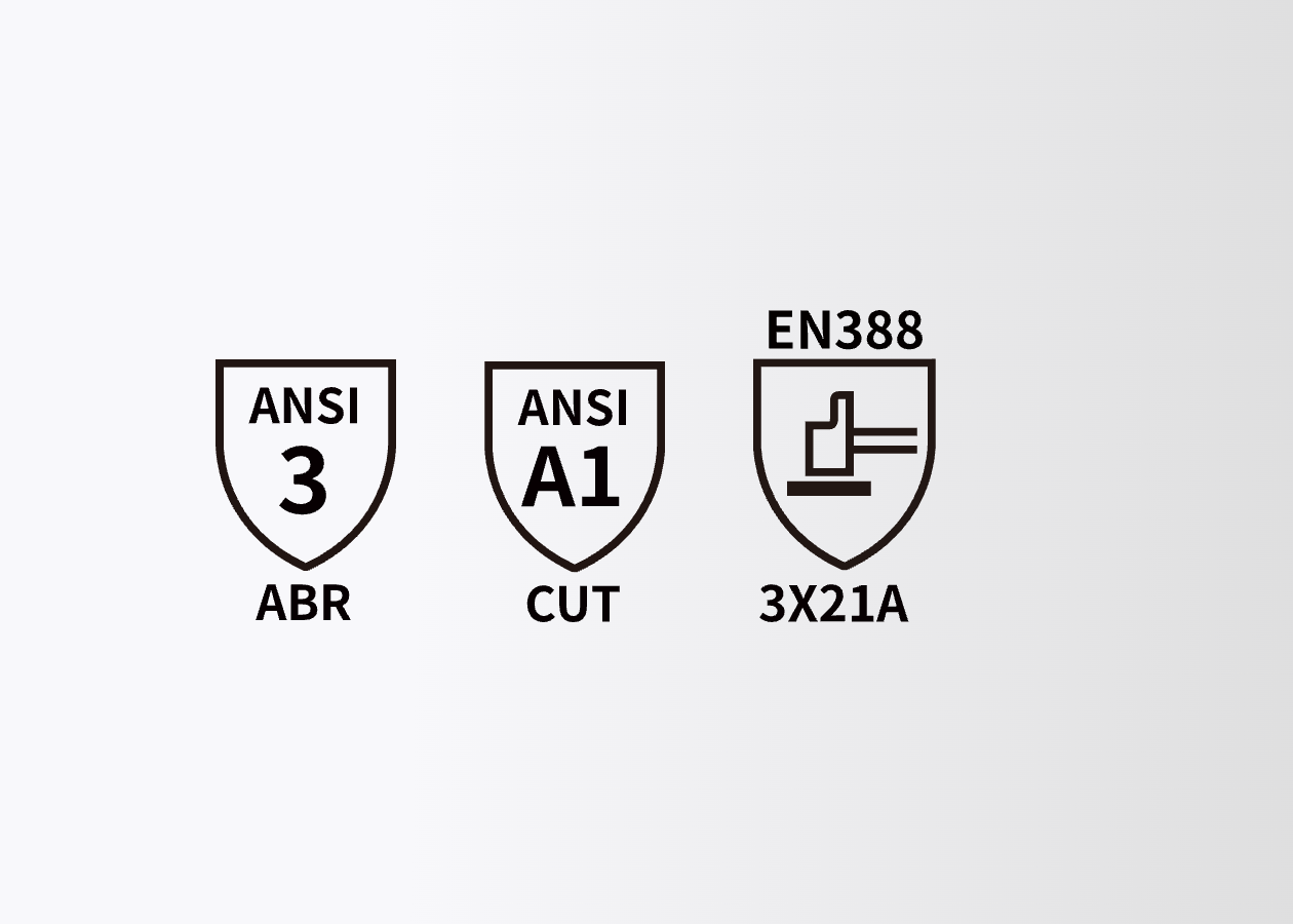 Rated according to standards of ANSI/ISEA 105 (North America) and EN 388 (Europe).