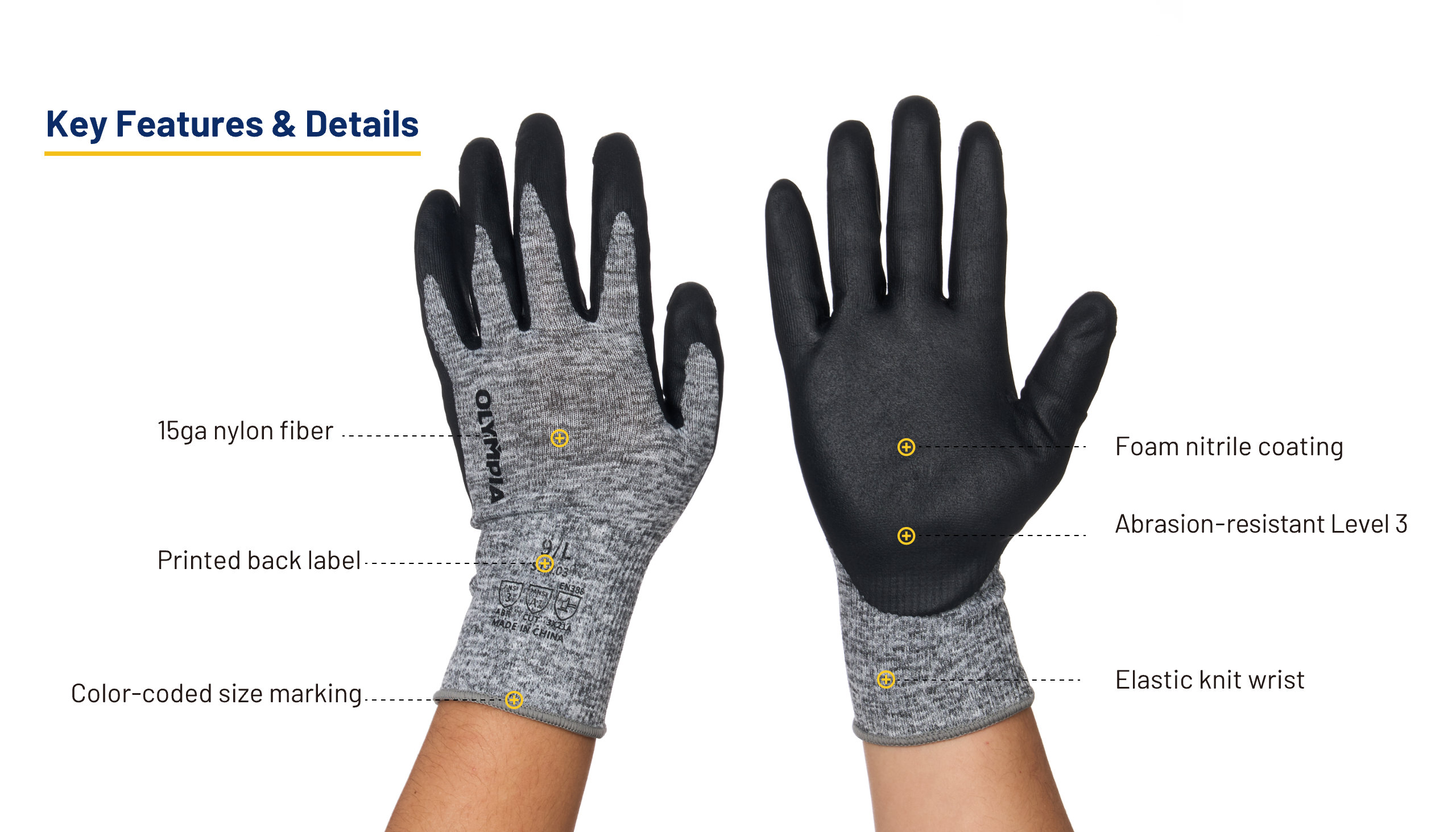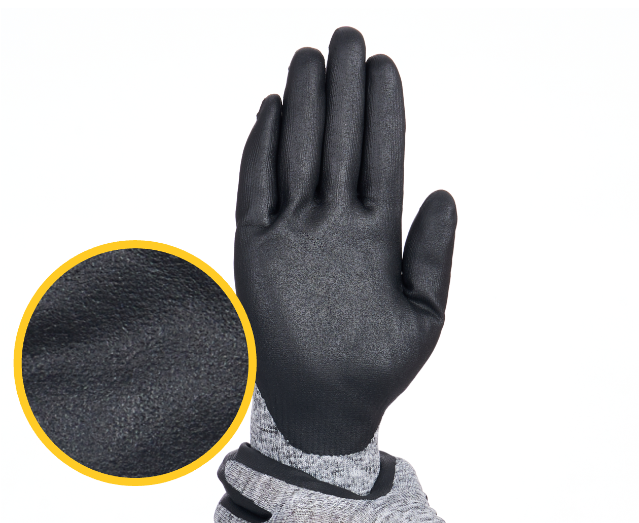 The palm-dipped foam nitrile coating is abrasion-resistant and provides a firm grip to prevent slipping, making it ideal for medium to heavy-duty use.