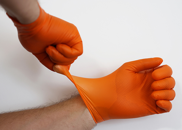 6 mil Disposable Nitrile Gloves, Orange, Diamond Grip, Small, 100 ct