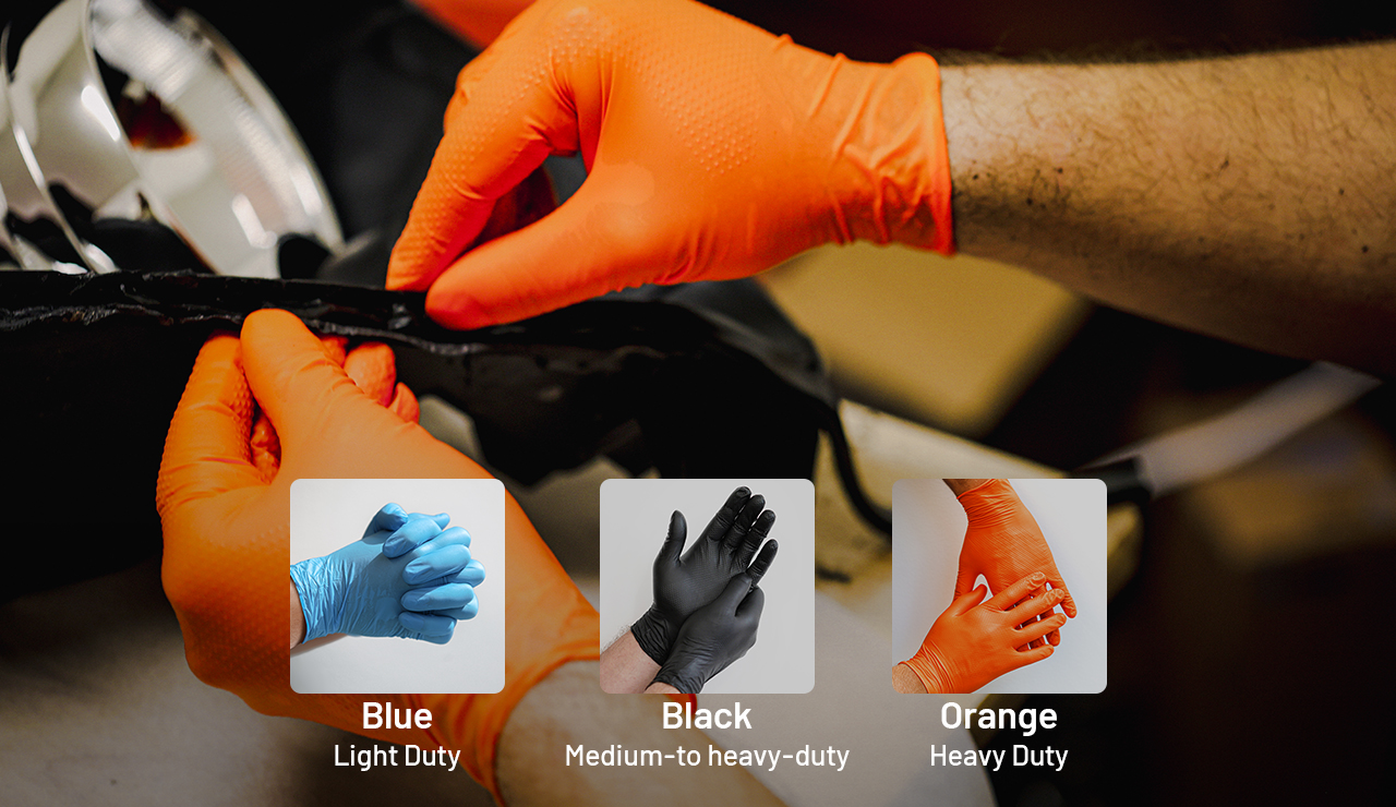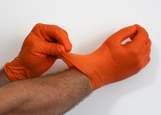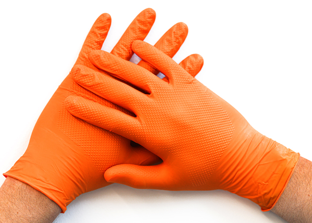 8 mil Disposable Nitrile Gloves, Orange, Diamond Grip, Large, 100 ct