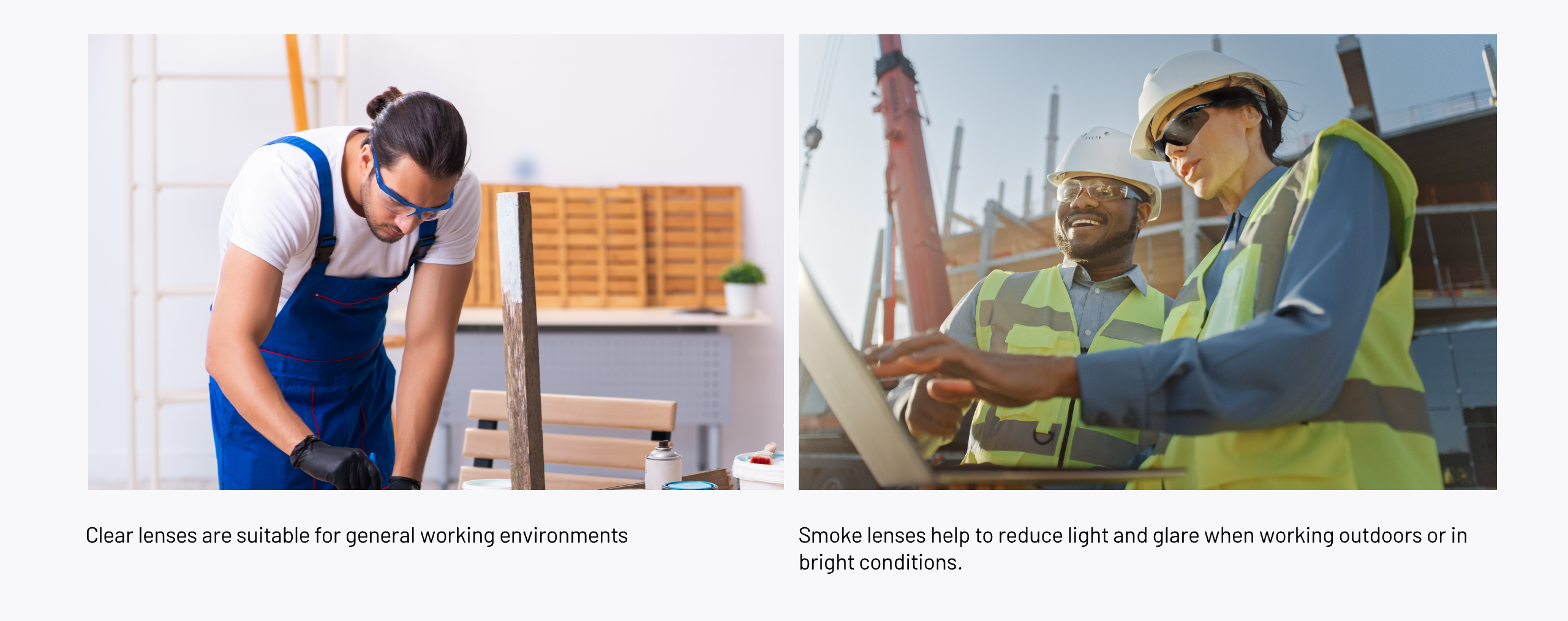 These glasses are for a variety of industries and working environments, such as warehousing, manufacturing, construction, carpentry and laboratory work.