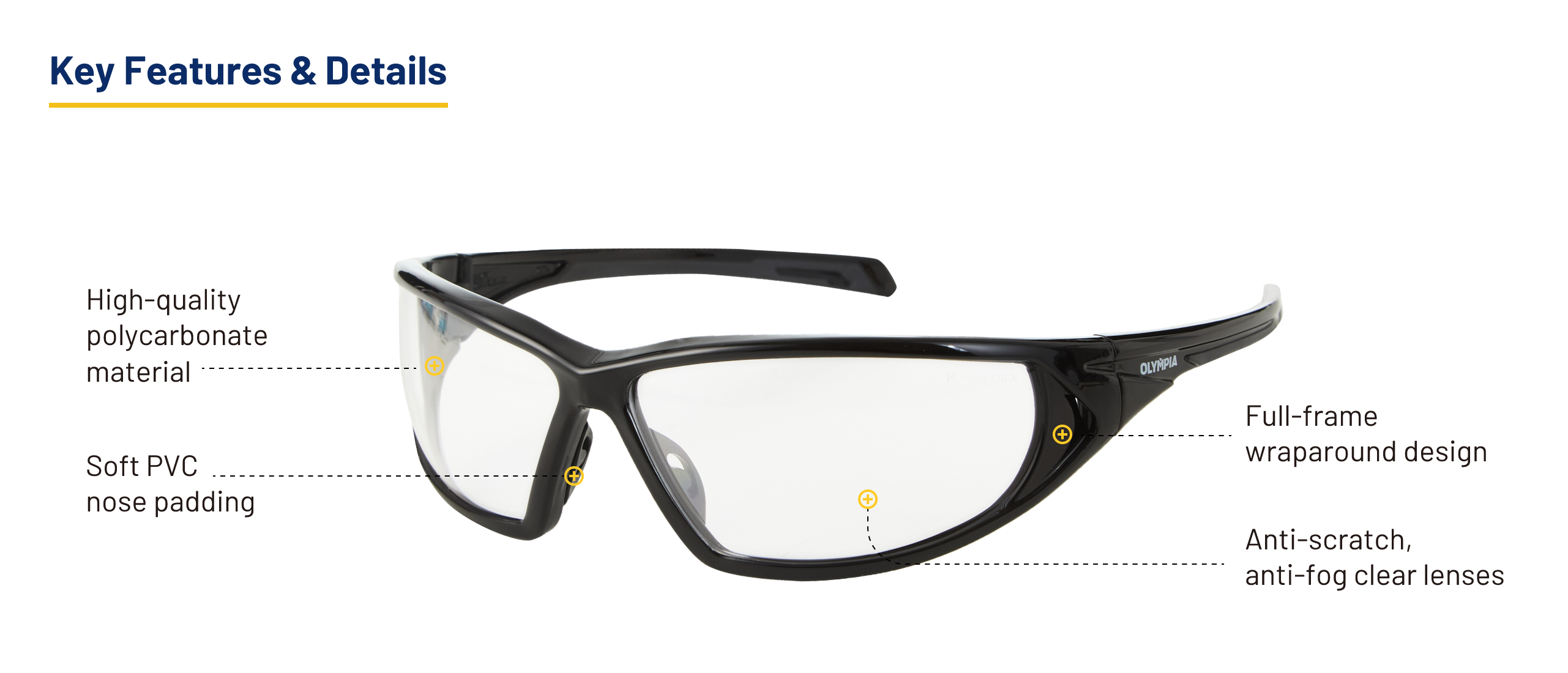 These safety glasses are for a variety of industries and working environments, such as warehousing, manufacturing, construction, carpentry and laboratory work. Clear lenses are suitable for general working environments.