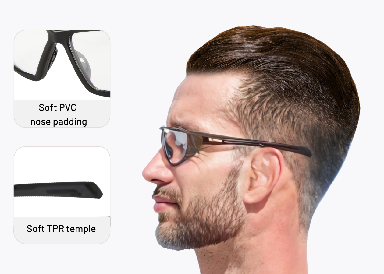 Soft PVC nose padding and TPE temple tips offer enhanced comfort and prevent slipping, while the wraparound design provides a fit that's snug yet comfortable. Flexible temples with soft tips provide security and a cushioned fit. Plus, these glasses are lightweight for extended wear.