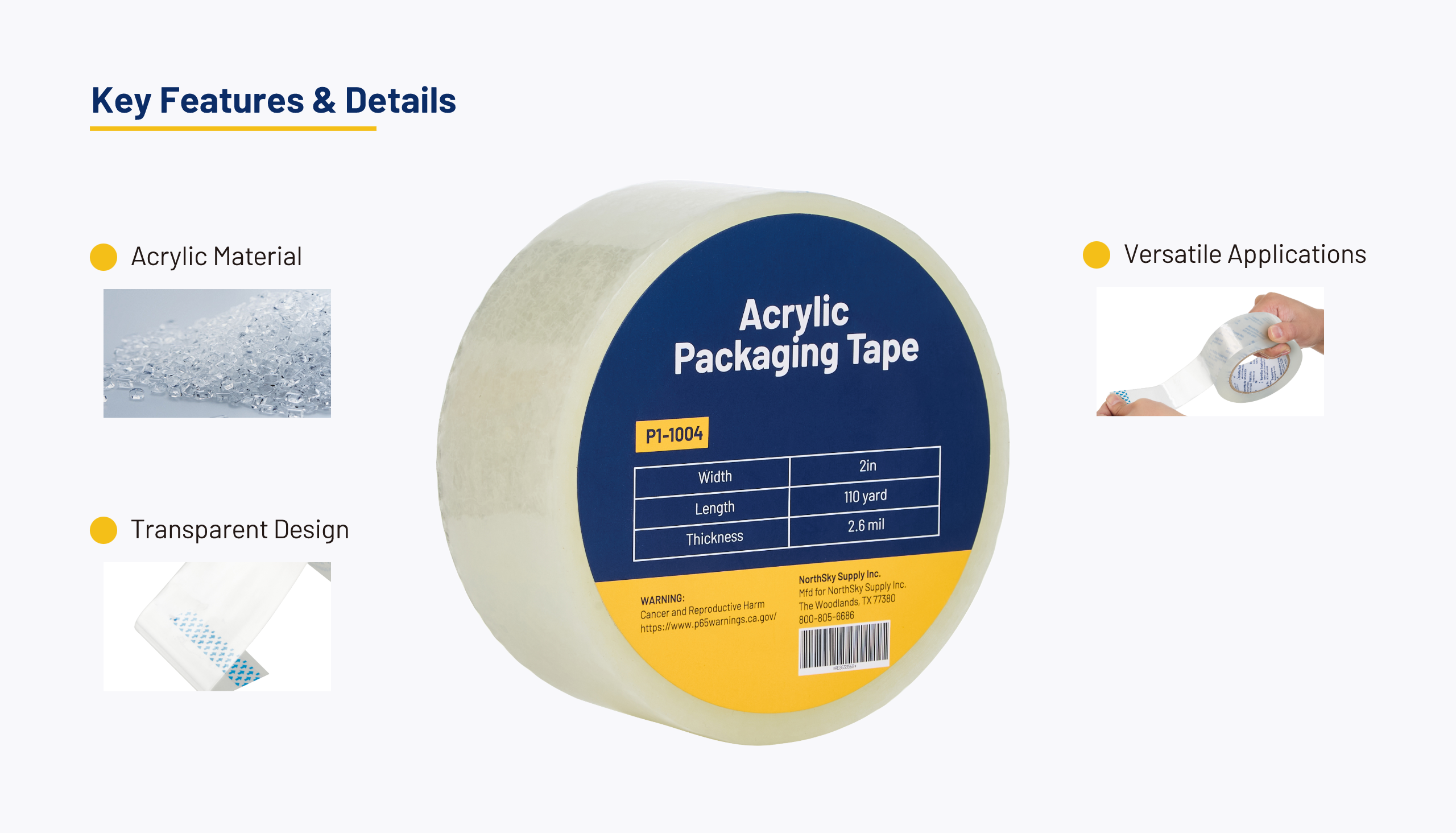 The industrial-strength tape is suitable for various surfaces such as plastic, glass, metal, and cardboard. It adaptes perfectly from warehouse to logistics facilities and retail packing.