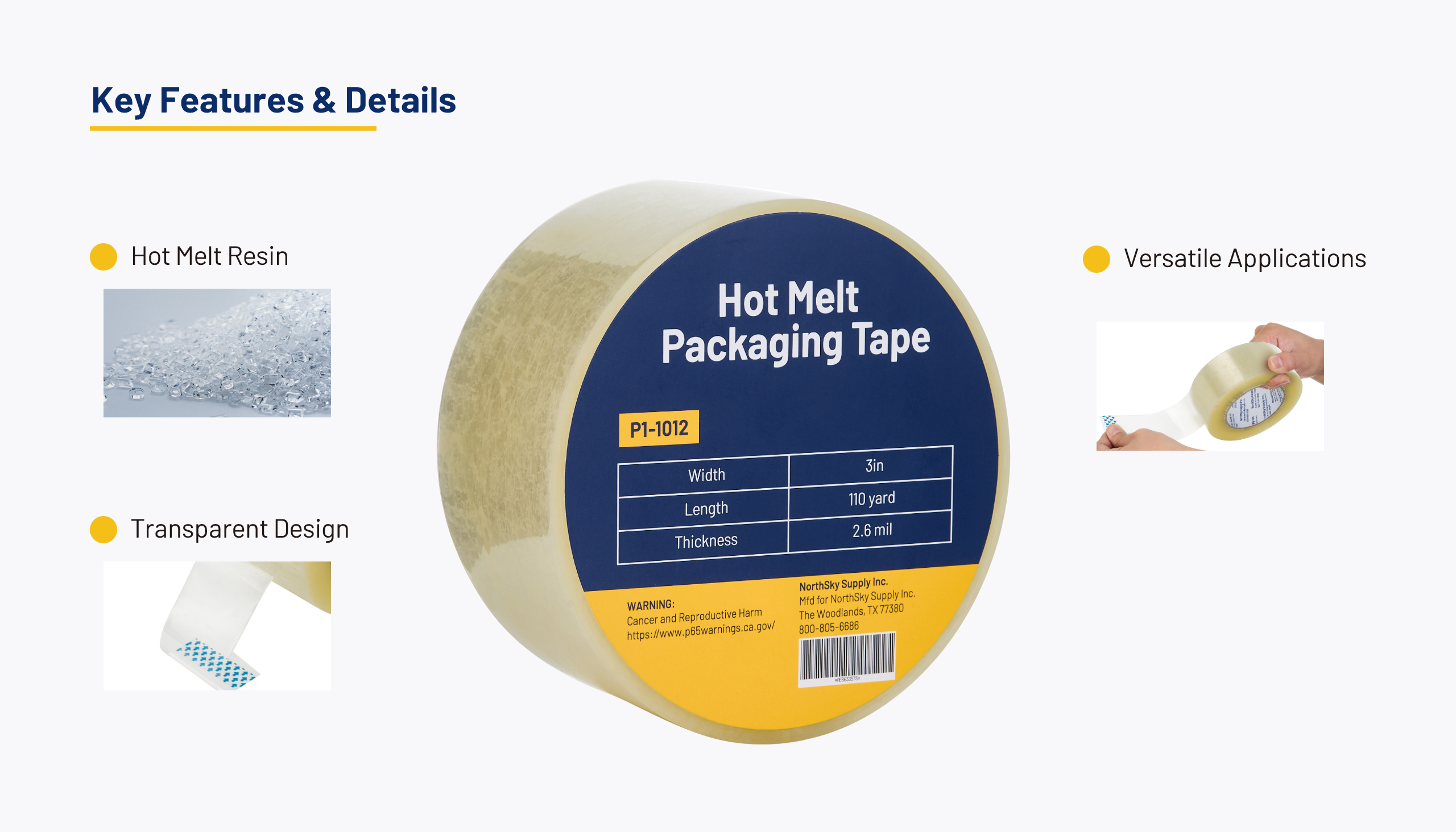This industrial-strength tape is suitable for a variety of surfaces such as plastic, glass, metal and cardboard. It adapts nicely from warehousing to logistics facilities to retail packaging.