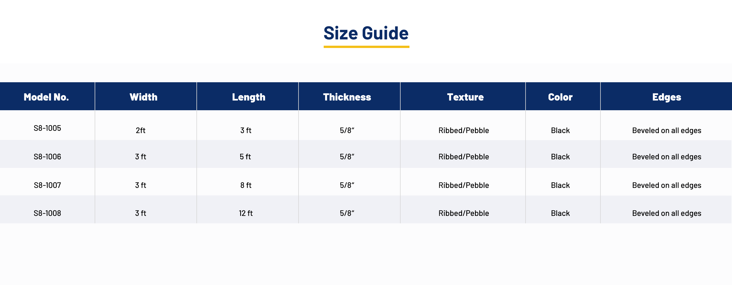 The polyurethane top layer with ribbed surface and beveled edging prevent slipping, cracking and damage.