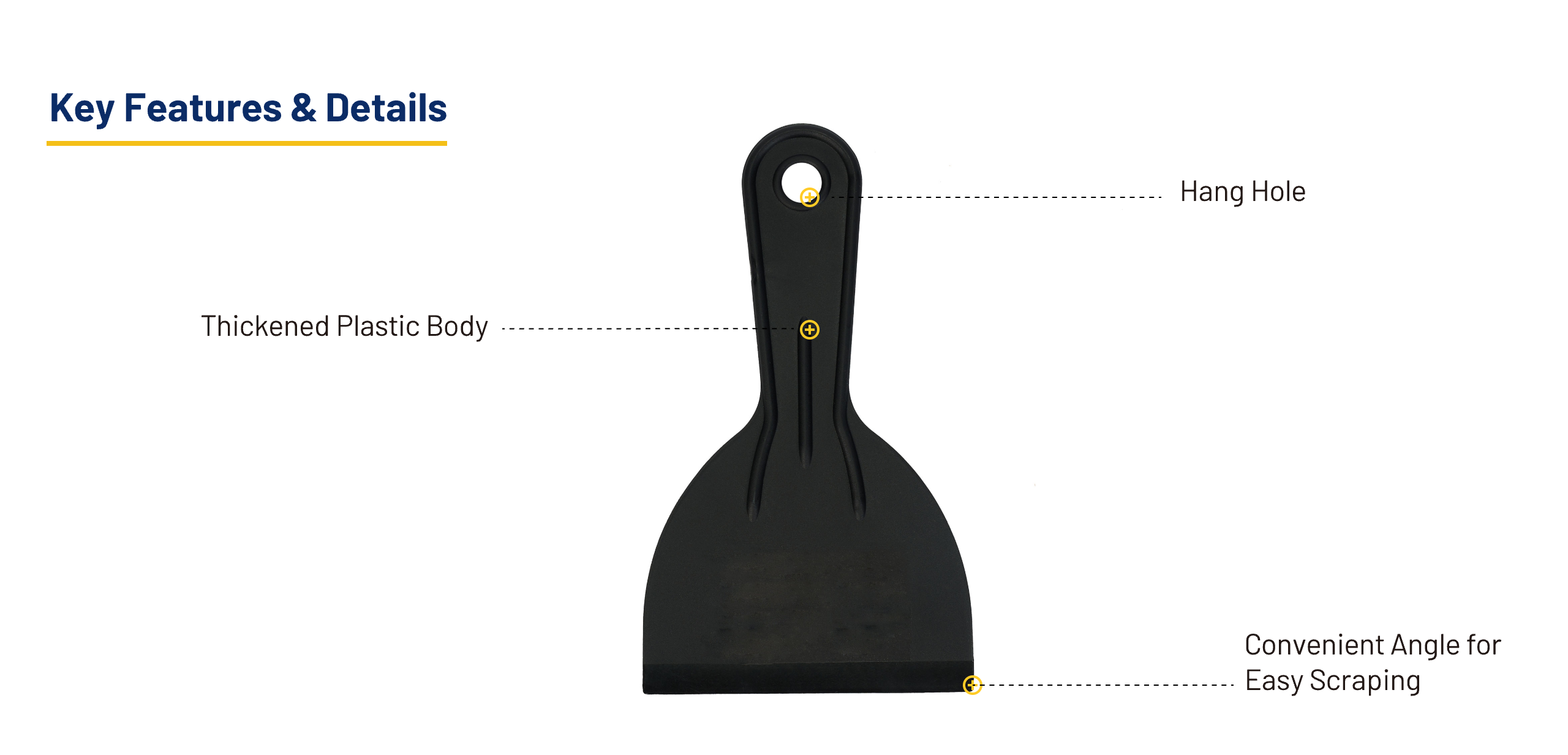 The smooth-edged head protects surfaces, while the non-slip handle enables a secure grip. A convenient hang hole at the tail end allows for easy storage.