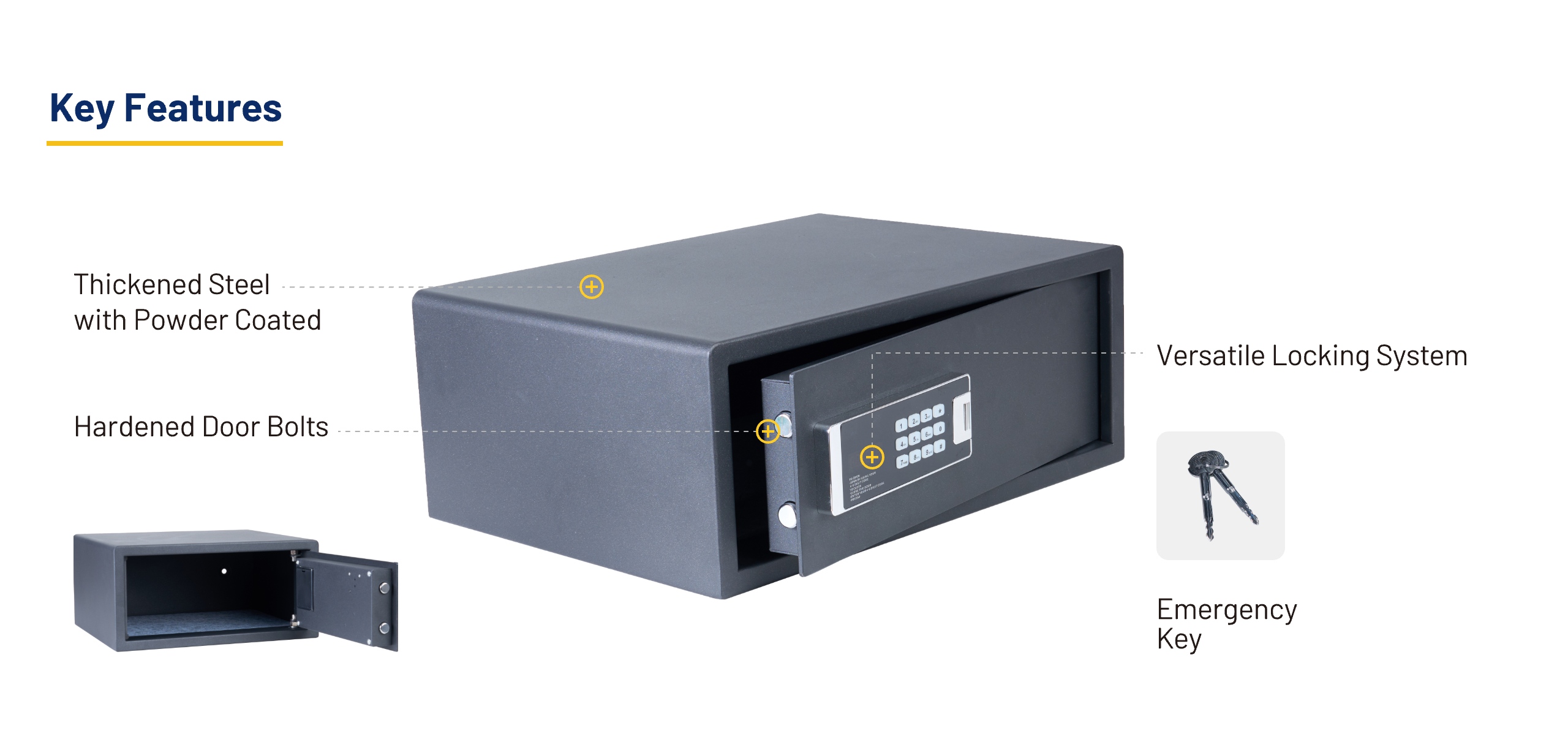 Suitable for safeguarding valuables, documents, cash, and personal belongings. Ideal for home, office, or hotel use.