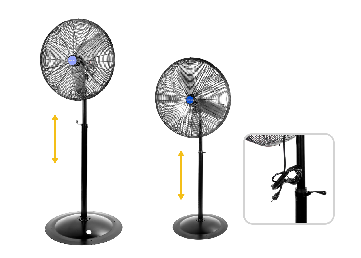 This pedestal fan meets recognized safety and performance standards for peace of mind in industrial and commercial use alike.