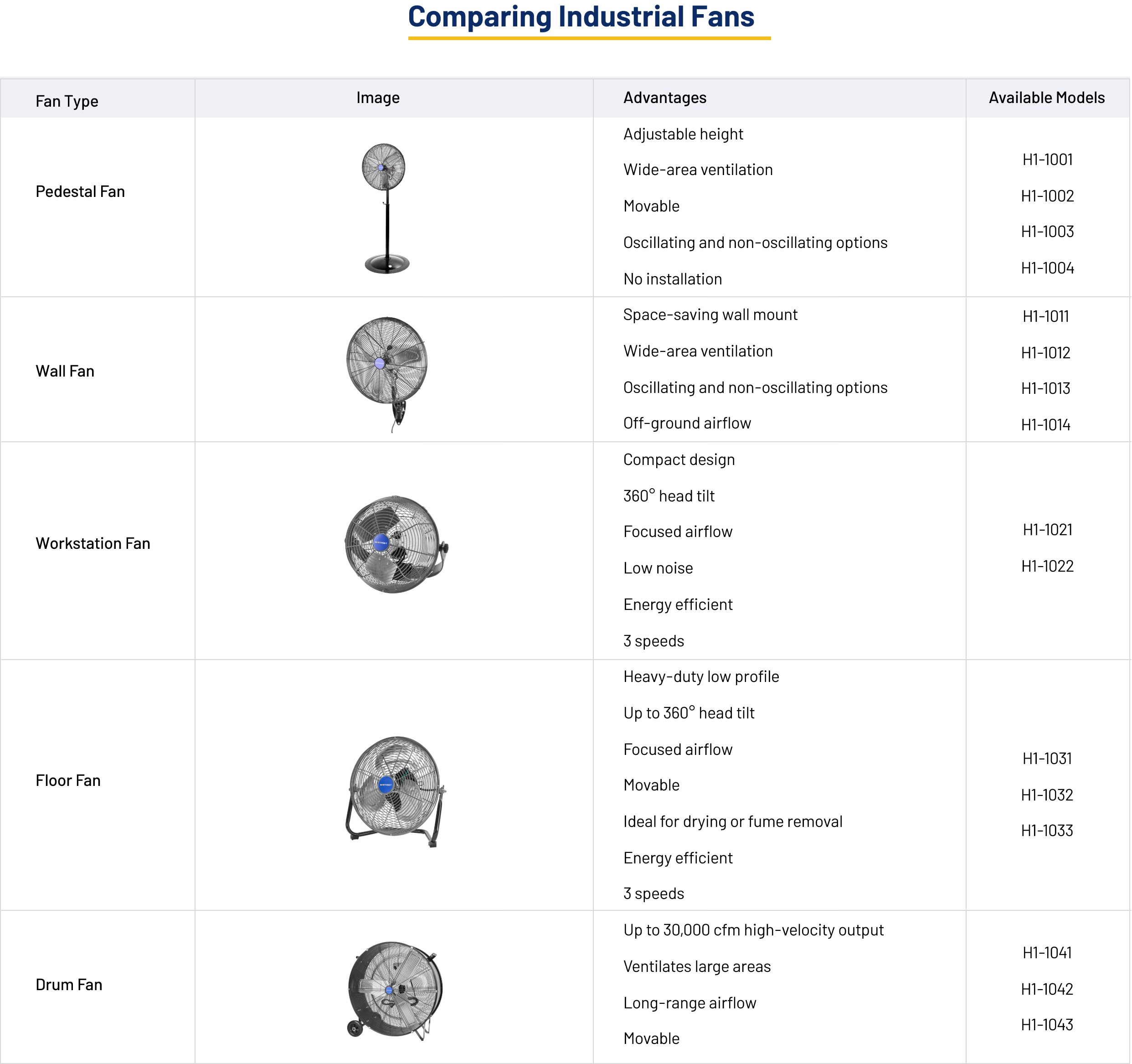 With a durable, all-metal body, aluminum fan blades, steel housings and a ball bearing motor, this industrial floor fan is built for long-term reliability in demanding environments.