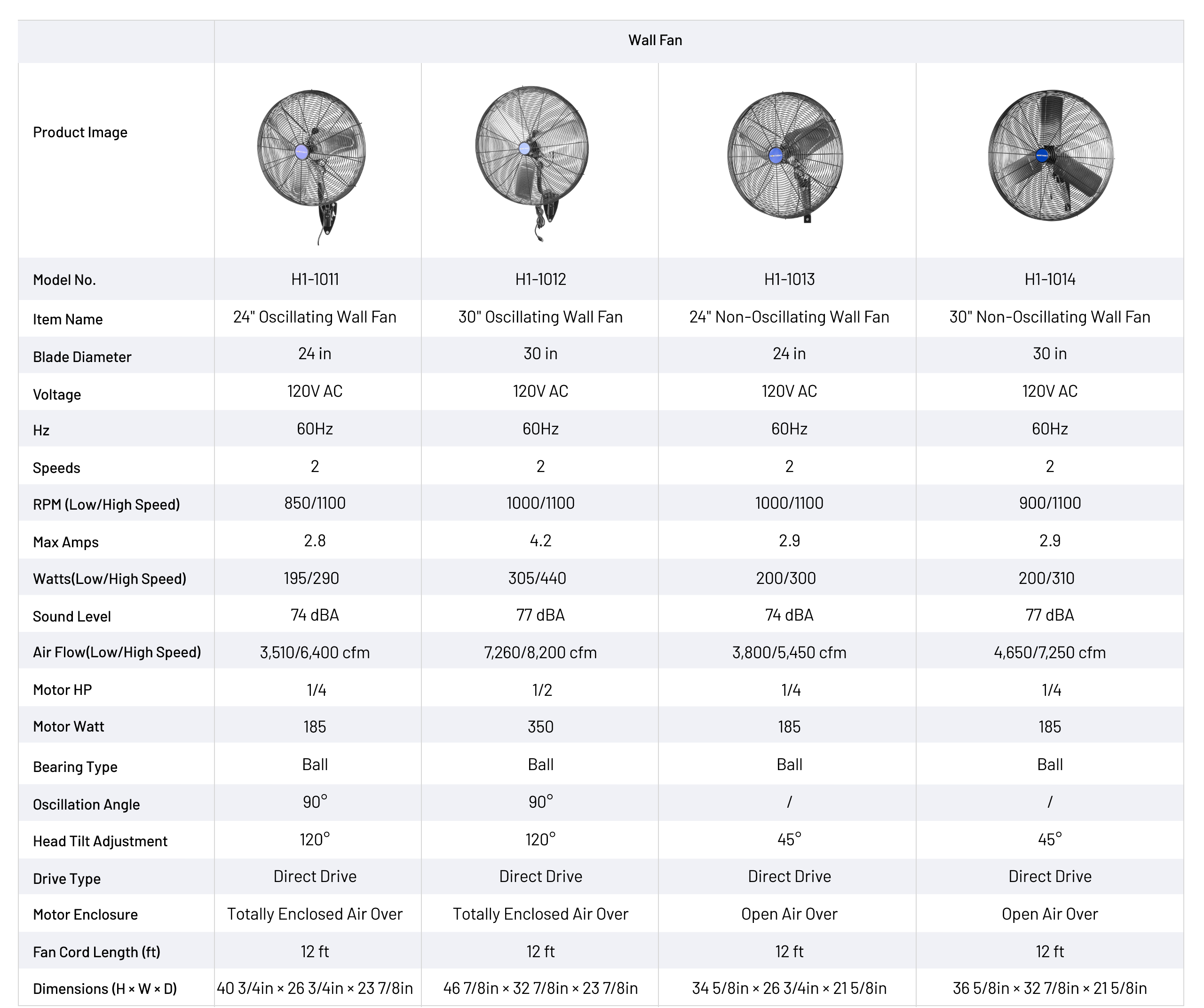 Available in 24" and 30", with oscillating and non-oscillating options.