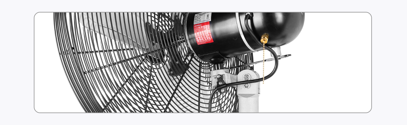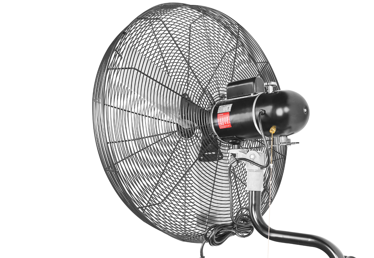 Ideal for warehouses, factories, garages, loading docks and anywhere with limited floor space but a need for wide-coverage and adjustable airflow. Thanks to its enclosed motor design, this oscillating fan is suitable for dusty or humid environments.