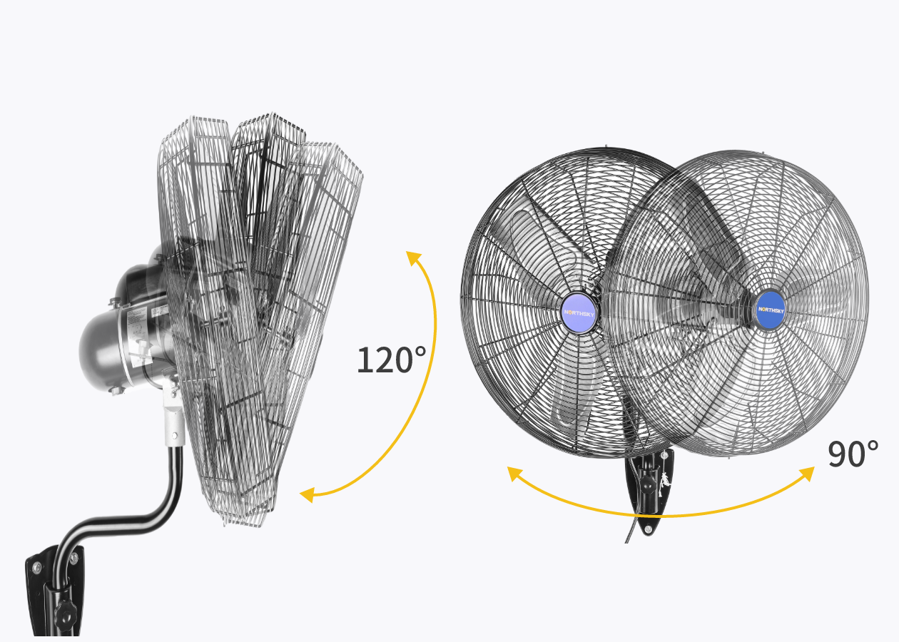 Features a 90° oscillation angle and 120° head tilt adjustment for broad air distribution and directional airflow control