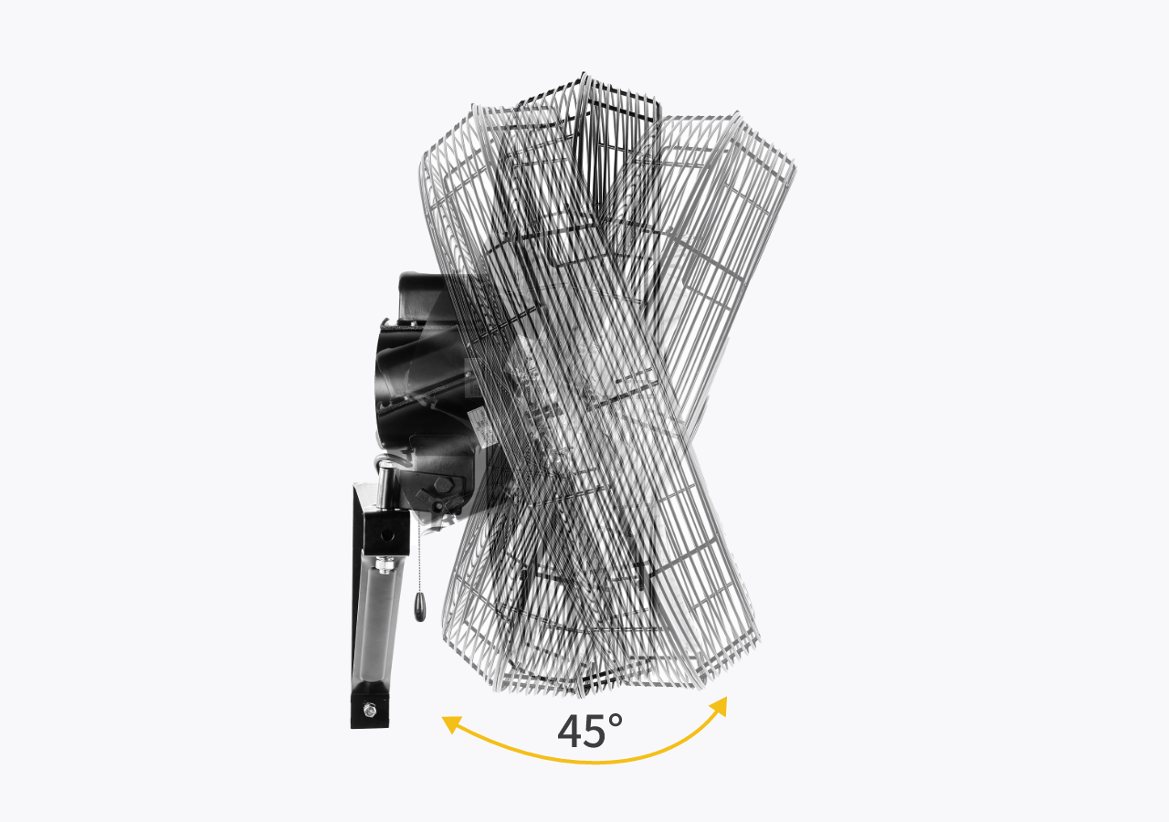 Features 45° head tilt adjustment for flexible air distribution and directional airflow control.
