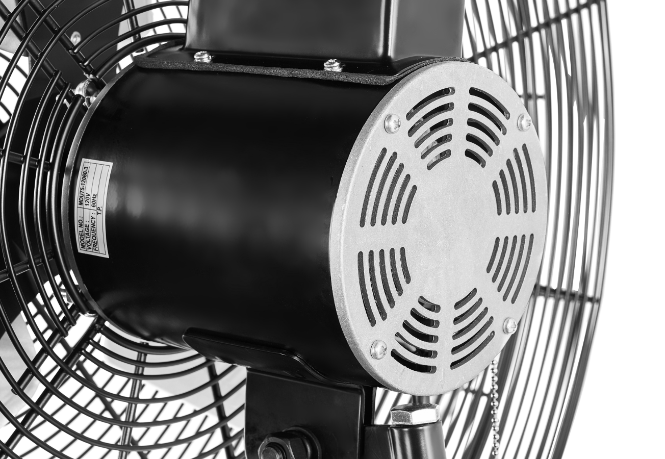 Featuring a durable metal body, aluminum fan blades, steel housings and a ball bearing motor, this industrial fan mounts securely to walls for long-term reliability in confined spaces and demanding environments.