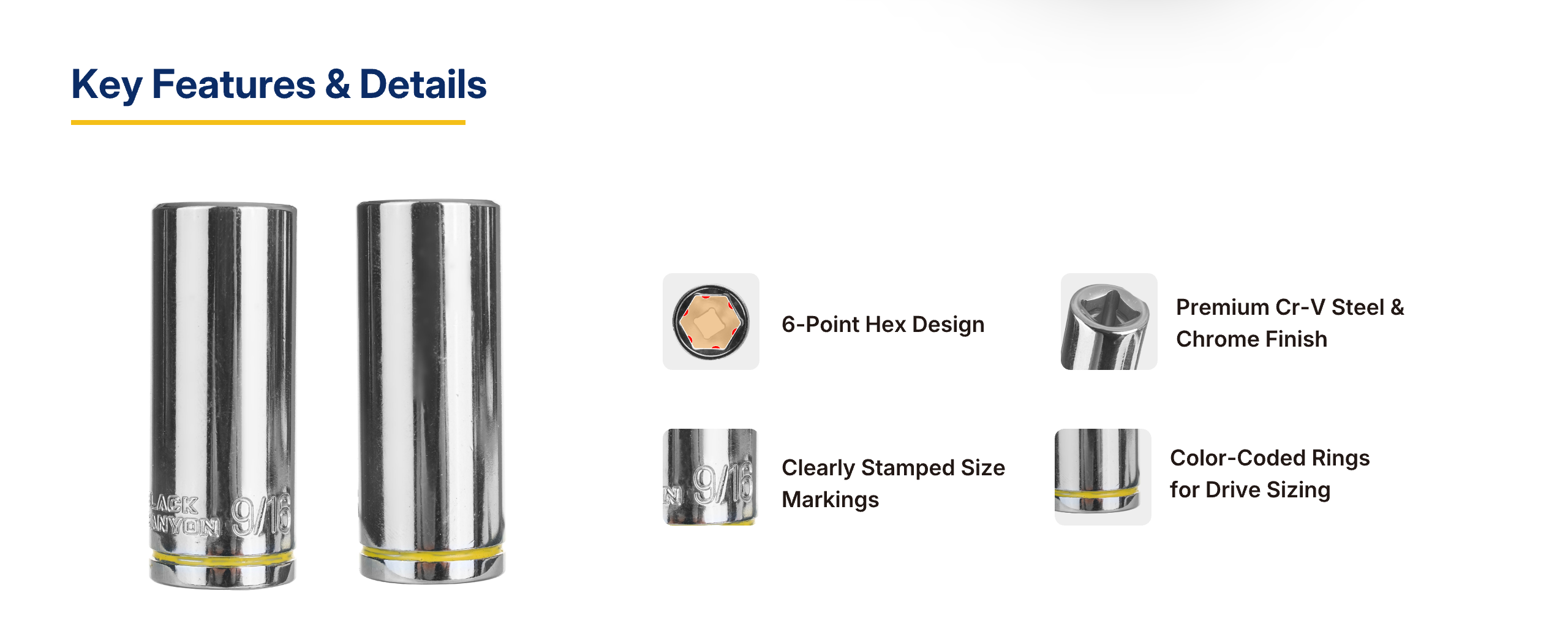 | Socket Type | Standard 6-Point | Standard & Deep 6-Point | Standard 6-Point | Standard & Deep 6-Point | Standard & Deep 6-Point |