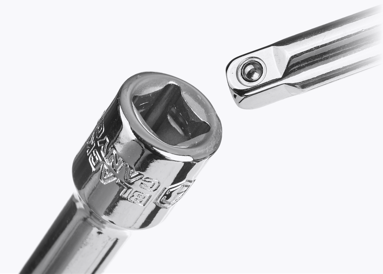 Four detent grooves guarantee a secure hold with the drive tool's retaining ball, while beveled inner rims facilitate smooth alignment onto other tools.