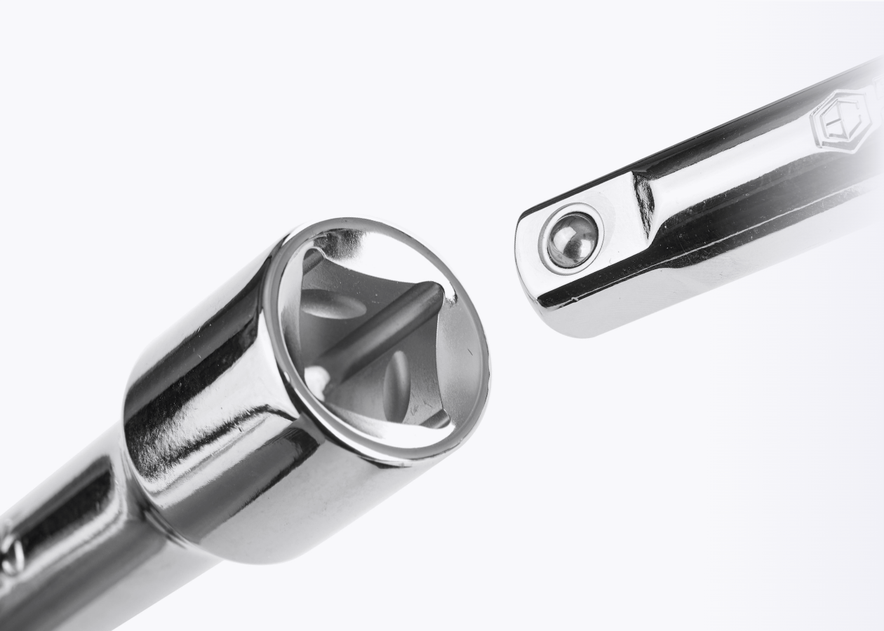 Four detent grooves guarantee a secure hold with the drive tool's retaining ball, while beveled inner rims facilitate smooth alignment onto other tools.