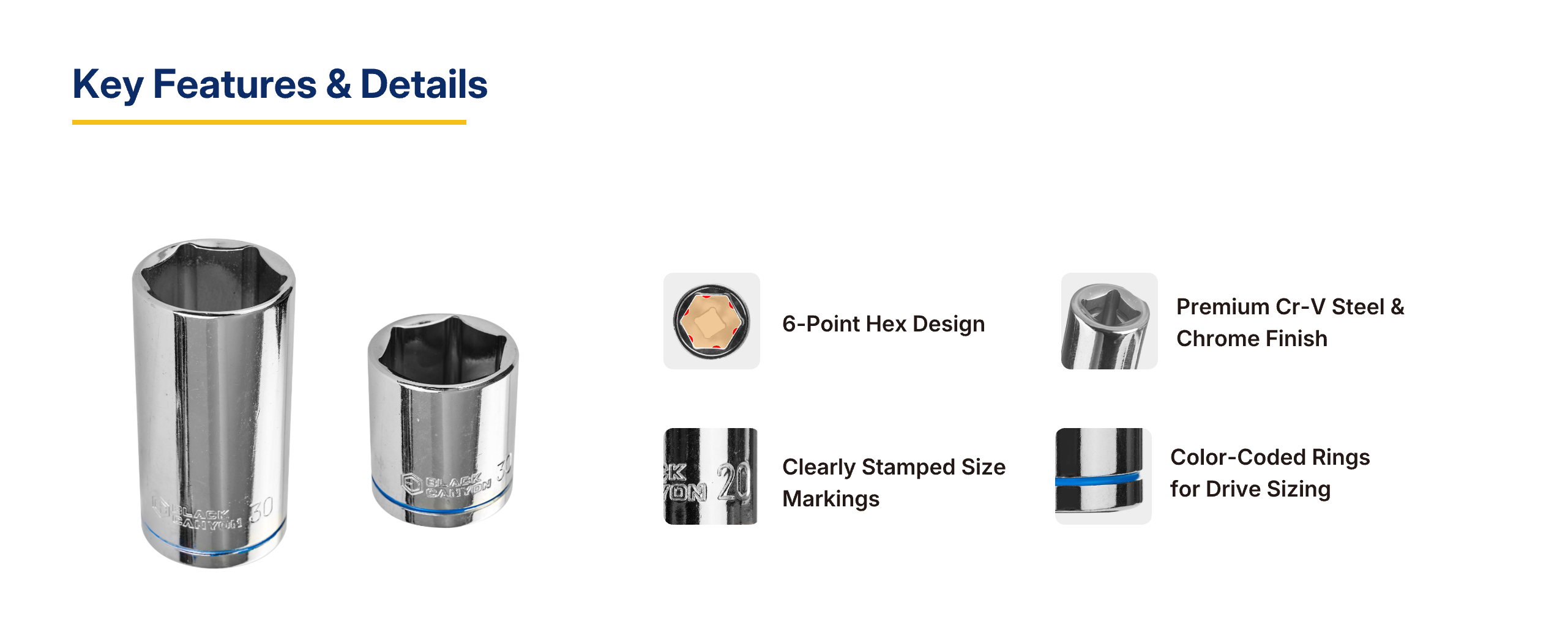| Socket Type | Standard 6-Point | Standard & Deep 6-Point | Standard 6-Point | Standard & Deep 6-Point | Standard & Deep 6-Point |