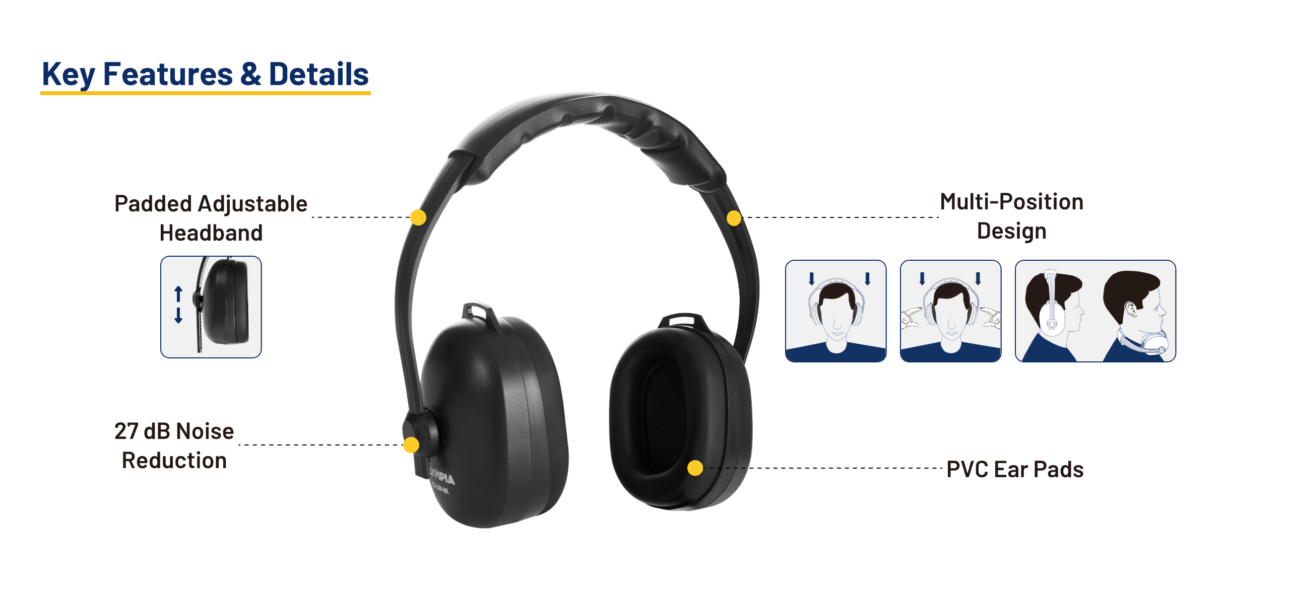 These over the head earmuffs features an easily adjustable headband, helping to ensure a secure and customized fit.