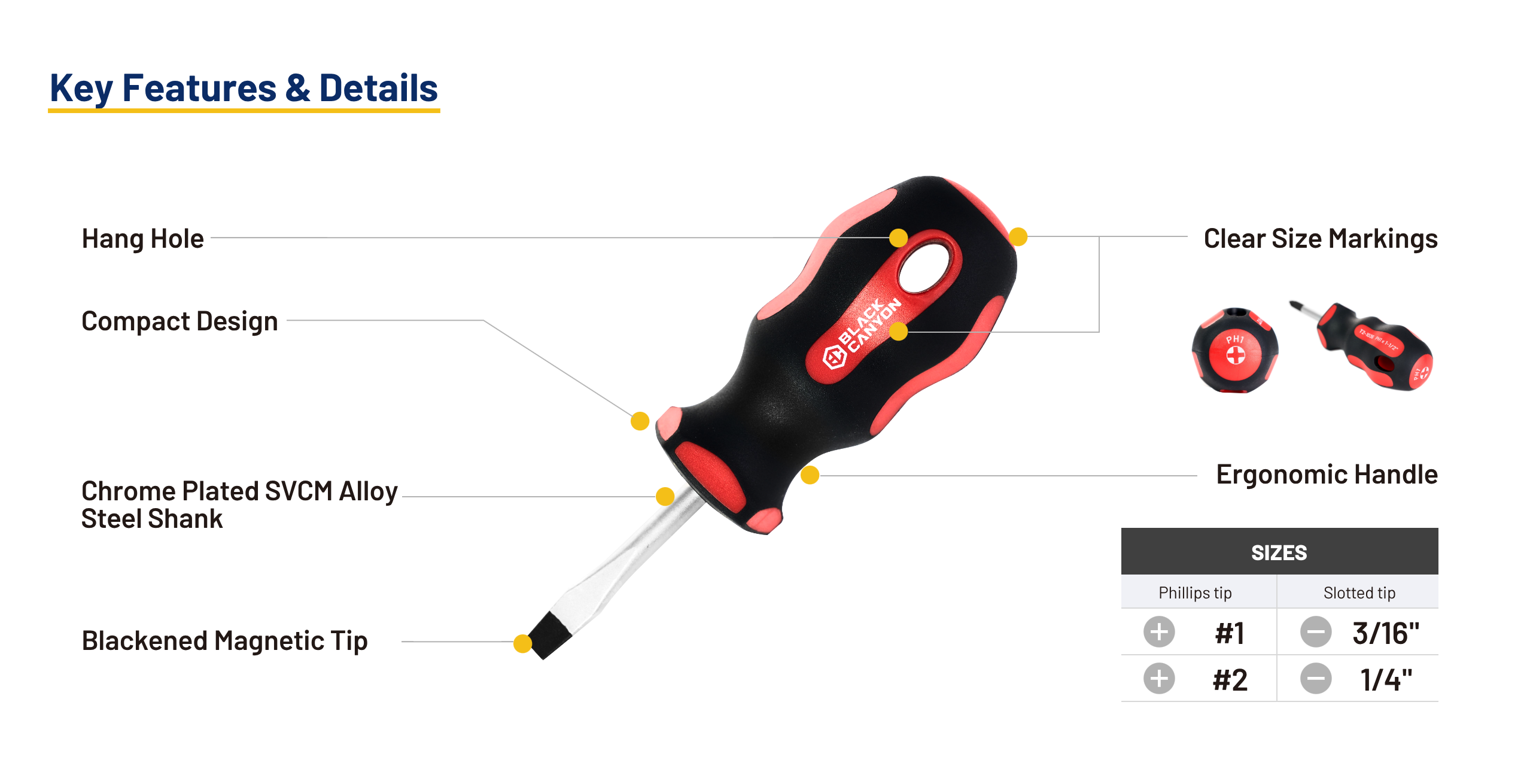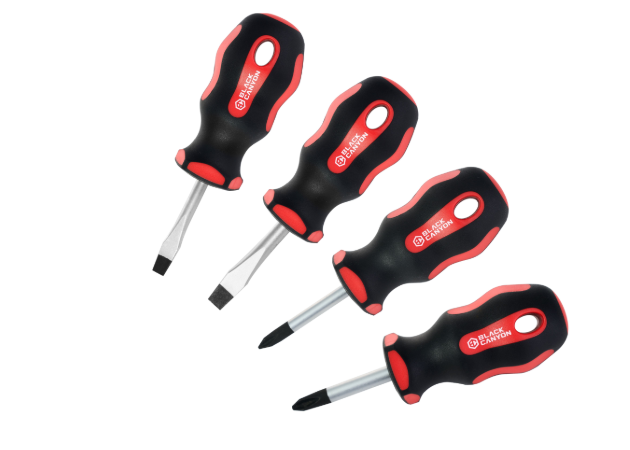 With a total length of just 4 inches, and a 1/4" diameter round shank, these stubby screwdrivers are ideal for use in confined areas where a standard screwdriver can't reach.